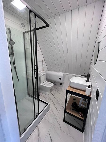- ванная комната с тёплым полом (умывальник, унитаз, душевая кабина);