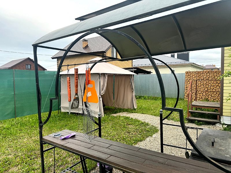 На территории неподалёку от дома кисть мангальный комплекс и беседка.
