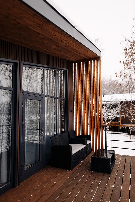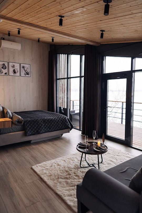 Территория клуба включает 10 уникальных авторских домов, каждый из которых имеет свой стиль и особенности. Все домики оснащены комфортной мебелью, санузлом с душевой кабиной, бесплатным Wi-Fi и уютными террасами с видом на реку.