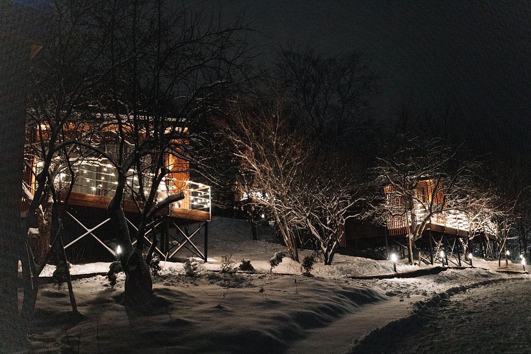 Читать полностьюВ глэмпинге можно не только наслаждаться природой, но и полностью расслабиться в банях с огромными панорамными окнами. Представьте: жаркий пар, аромат дерева, уединение, и за стеклом – зимний лес, река, природа, которой можно любоваться, оставаясь в тепле и уюте.