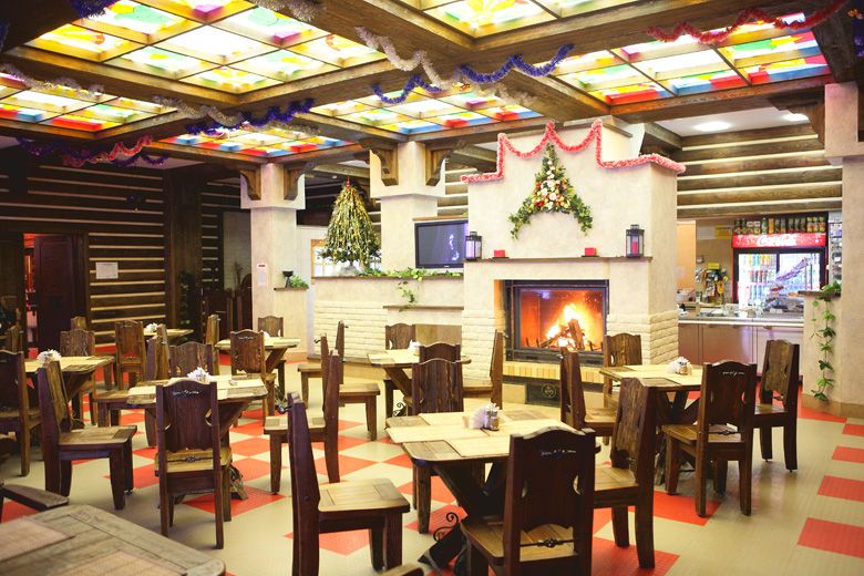 Первый этаж включает в себя два обеденных зала: шашлычная на 36 посадочных мест, спорт-кафе – 72 посадочных мест.
