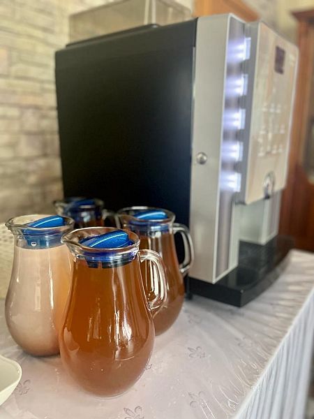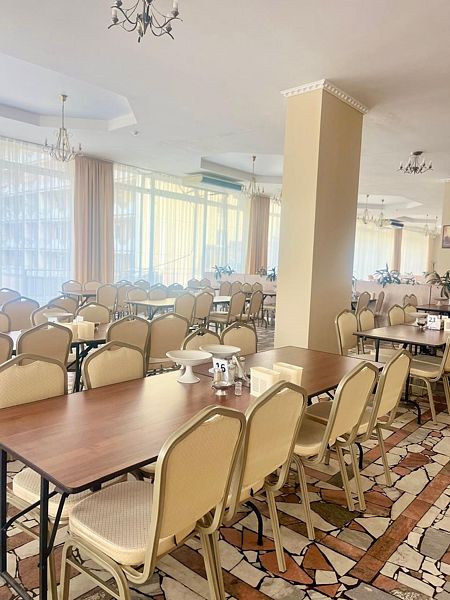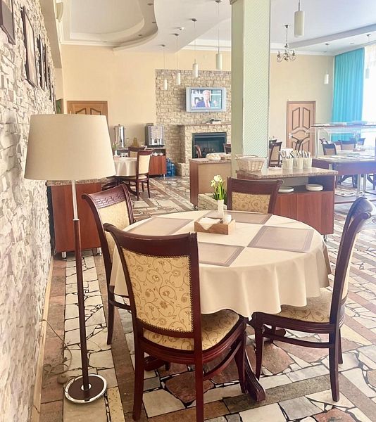В двух уютных залах столовой вас ждет разнообразное меню, вы сможете выбрать между системой меню-заказ и «шведским столом». Предлагается диетическое питание для тех, кто следит за своим здоровьем. А также на свежем воздухе организована зона для барбекю с беседками.