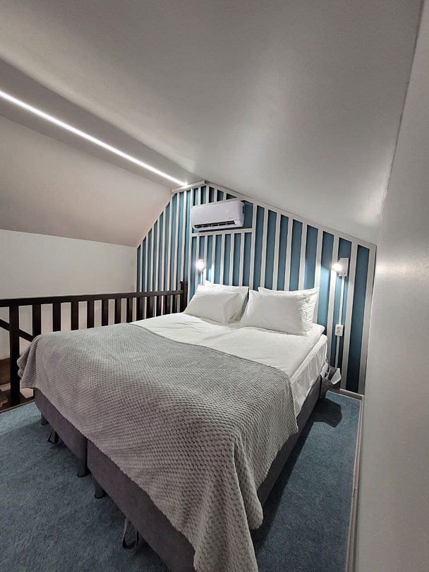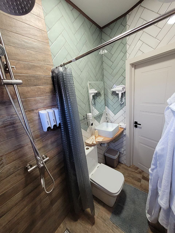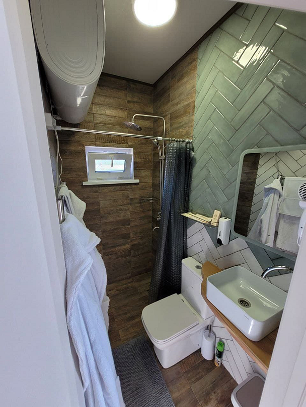 В домике есть: Wi-Fi, телевизор с функцией смарт, музыкальная колонка с караоке, холодильник, микроволновая печь, чайник, посуда, вода, чай, кофе, соль, перец, сахар, спальные места повышенной комфортности, ванные принадлежности, гигиенический набор, халаты, тапочки.