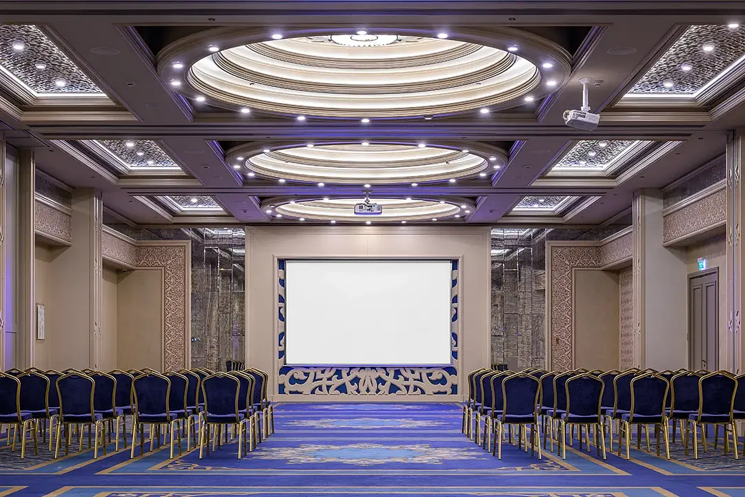Зал можно трансформировать в четыре отдельных зала (130 м²/ 75 м²/ 75м²/ 75 м²), используя мобильные перегородки, что позволяет эффективно организовать мероприятия различных форматов. Каждый зал оснащен современным мультимедийным оборудованием.