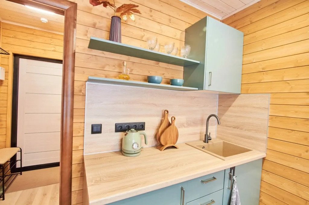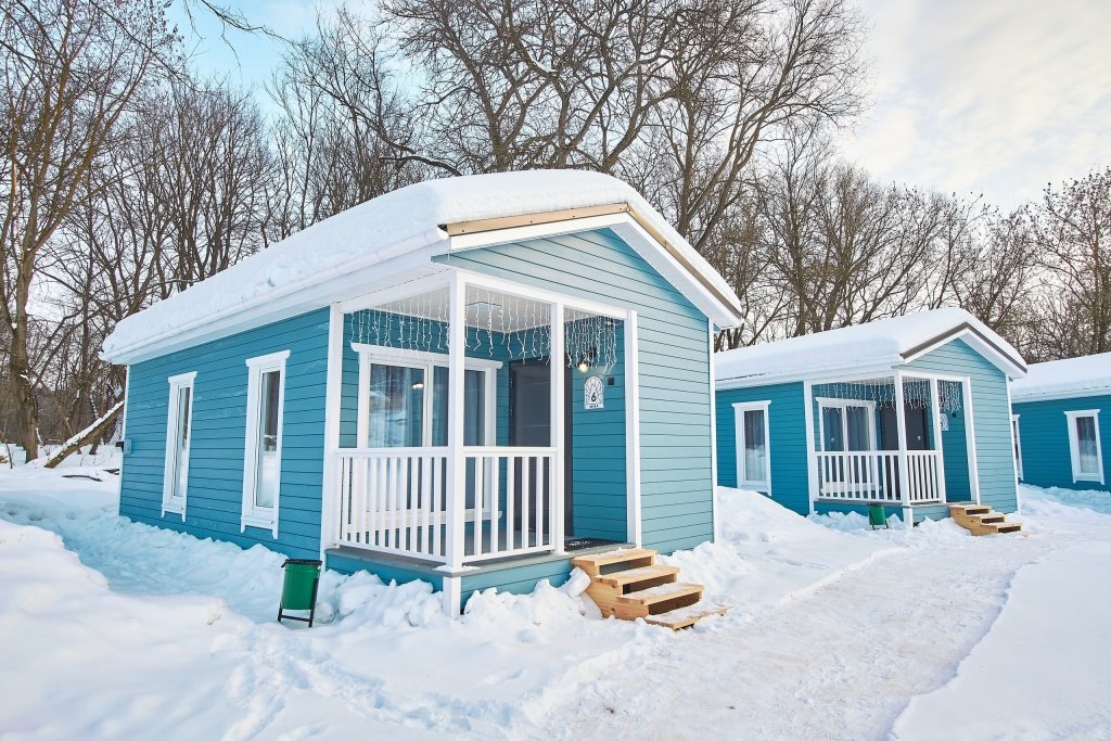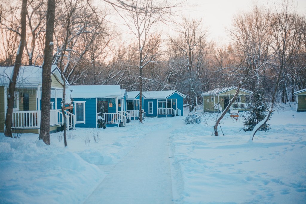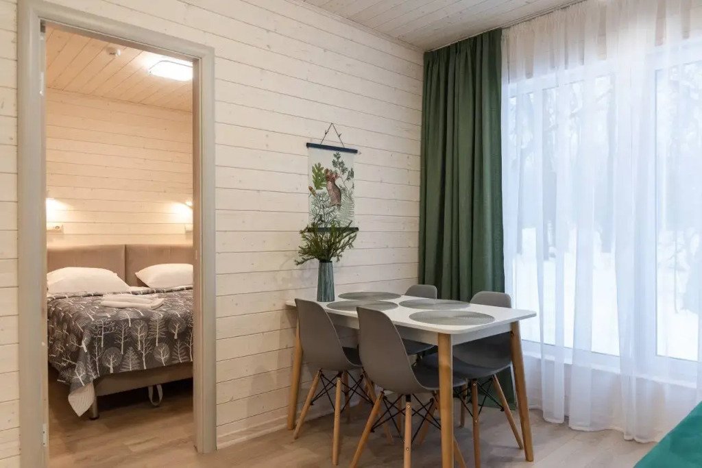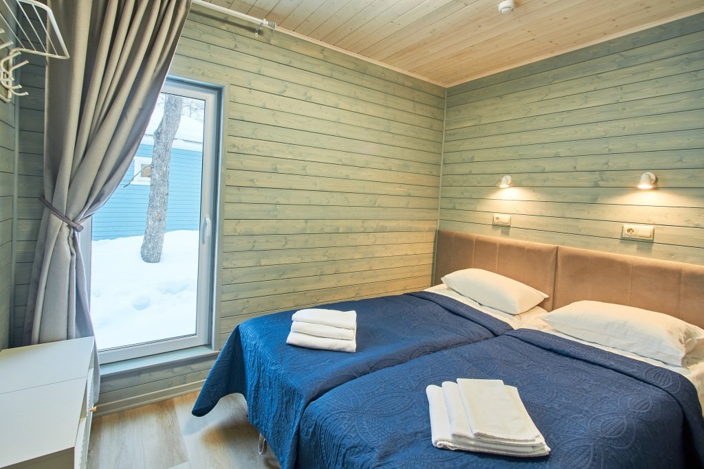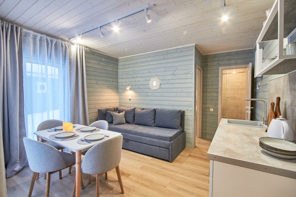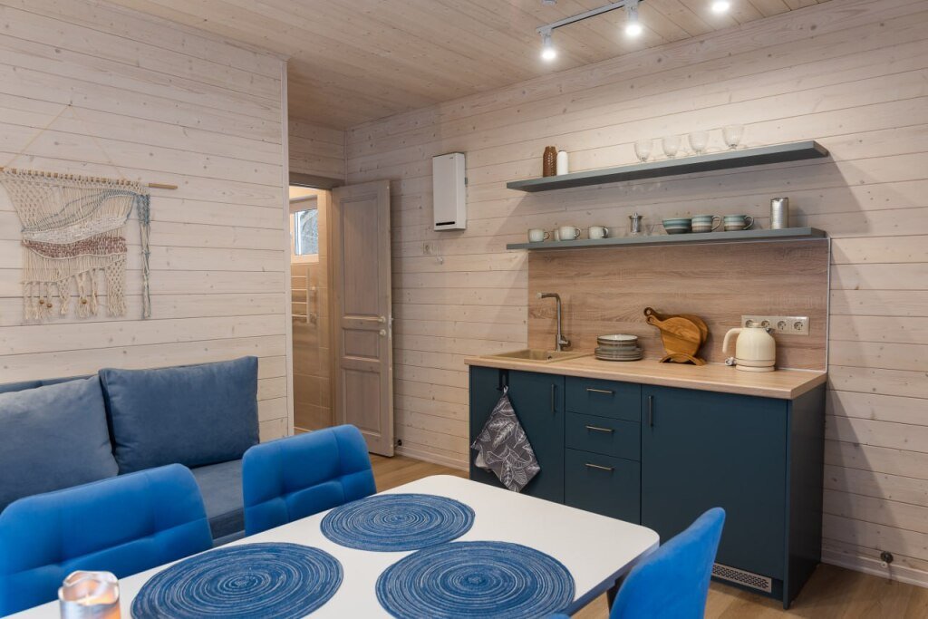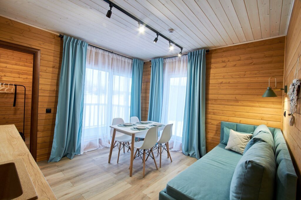 Это отдельно стоящие друг от друга дома, с индивидуальным отоплением. Всего 10 домов: шесть 6ти местных, четыре дома 4х местные. В домах есть с/у с душем, кухня гостиная с раскладным диваном с дополнительными полноценными местами. Кухня оборудована необходимым инвентарем: посуда, плитка, холодильник, раковина, чайник.