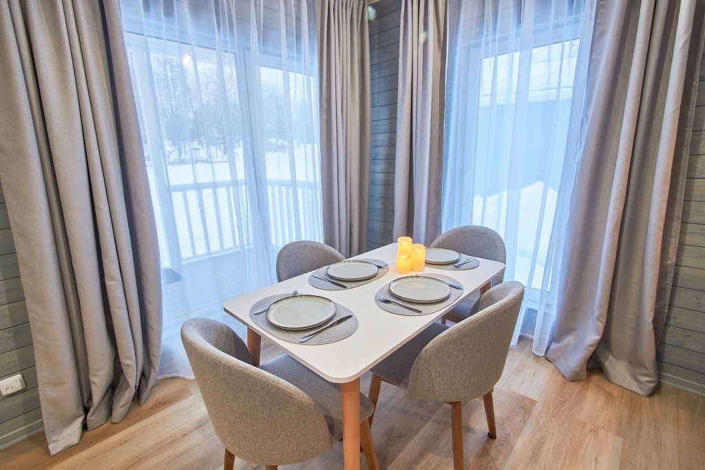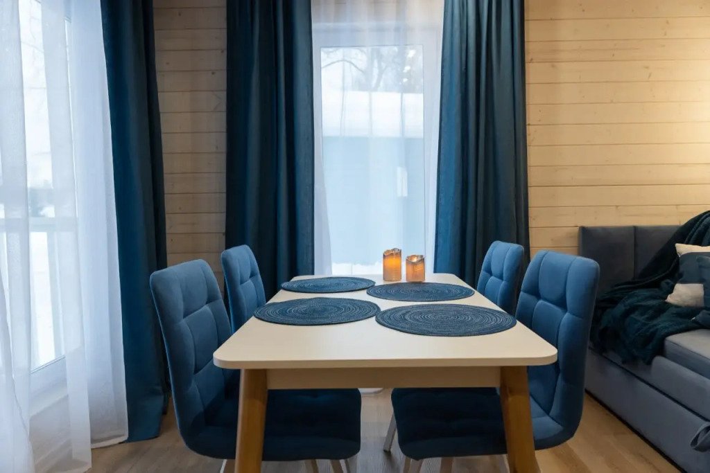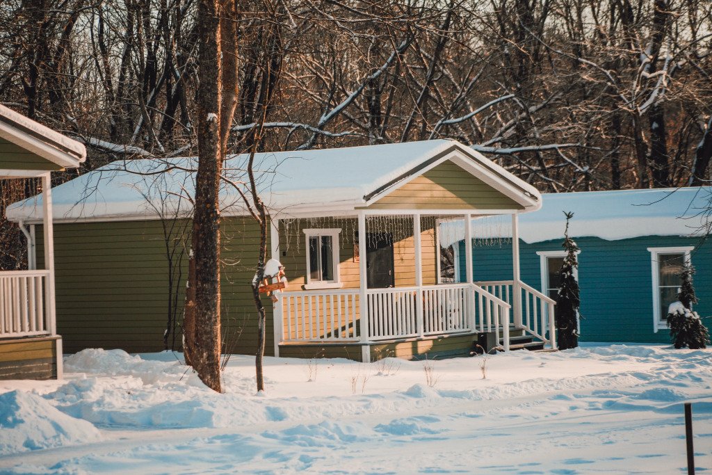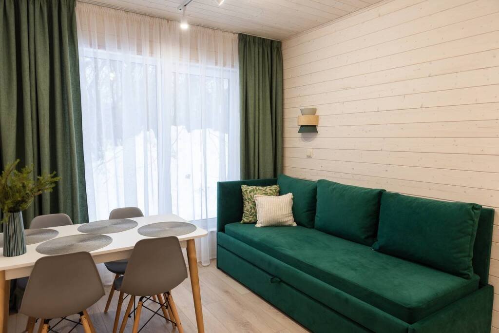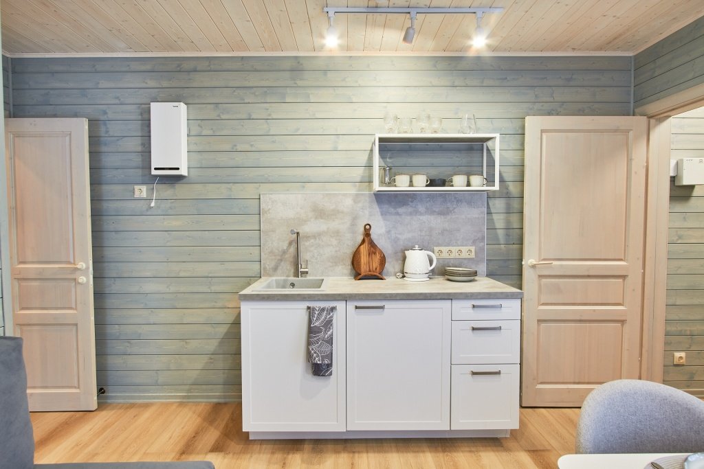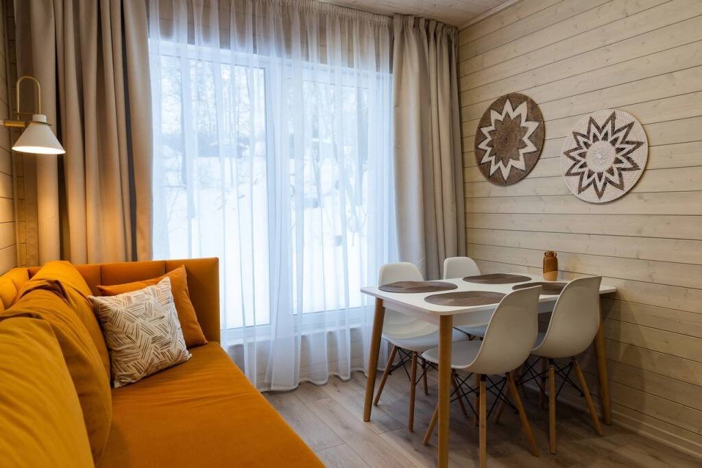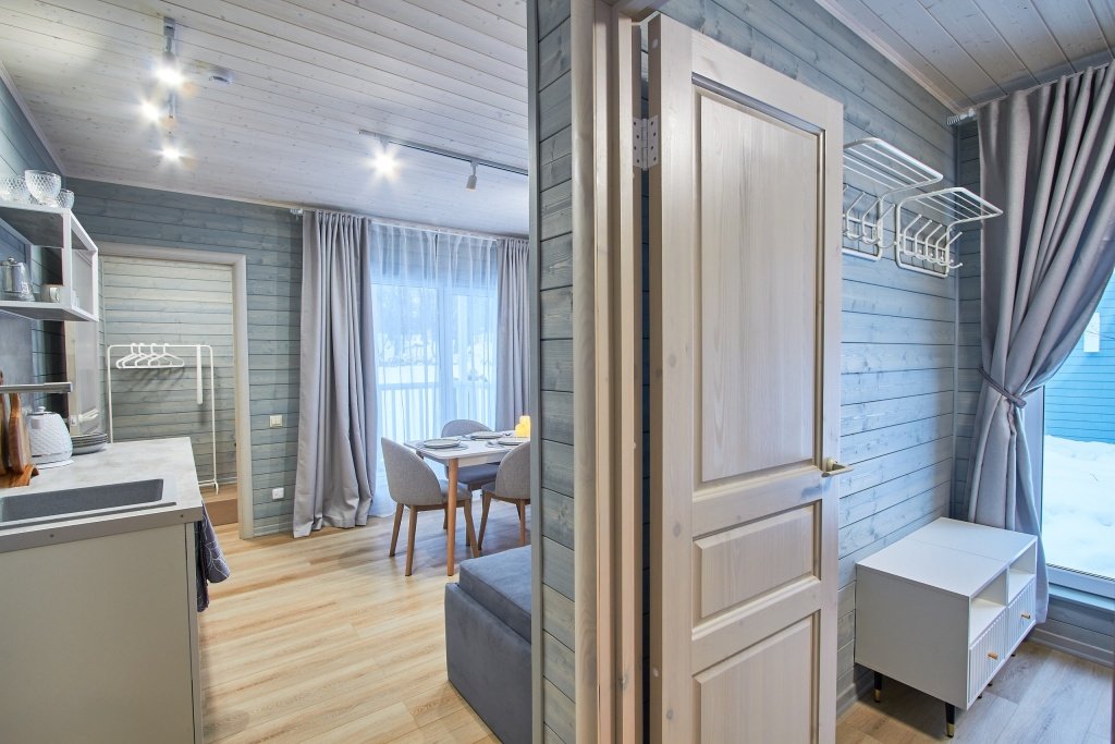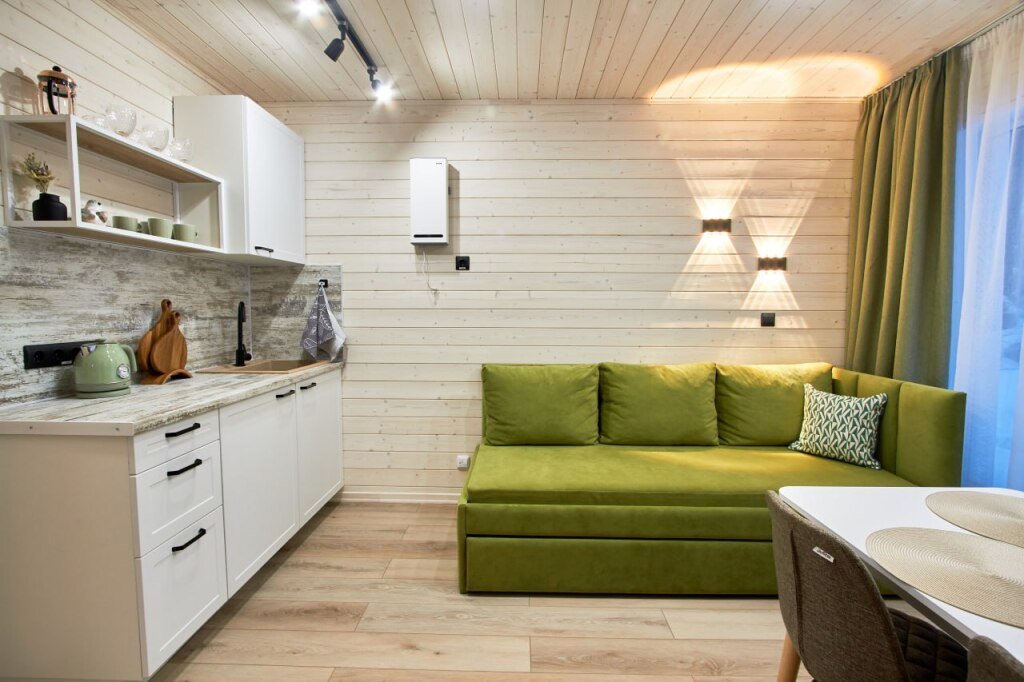 Это отдельно стоящие друг от друга дома, с индивидуальным отоплением. Всего 10 домов: шесть 6ти местных, четыре дома 4х местные. В домах есть с/у с душем, кухня гостиная с раскладным диваном с дополнительными полноценными местами. Кухня оборудована необходимым инвентарем: посуда, плитка, холодильник, раковина, чайник.