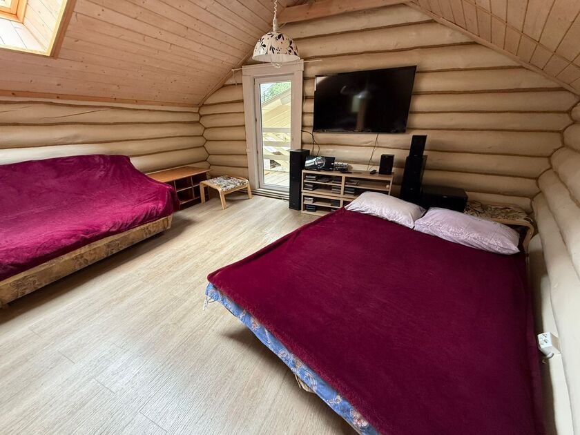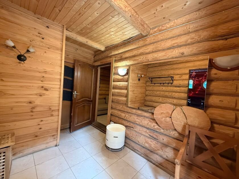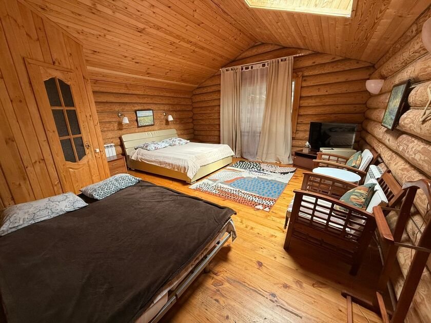 В доме есть все необходимое для отдыха: Smart TV, акустическая система, мангальная зона на свежем воздухе, русская баня на дровах и чан фурако с горячей водой.