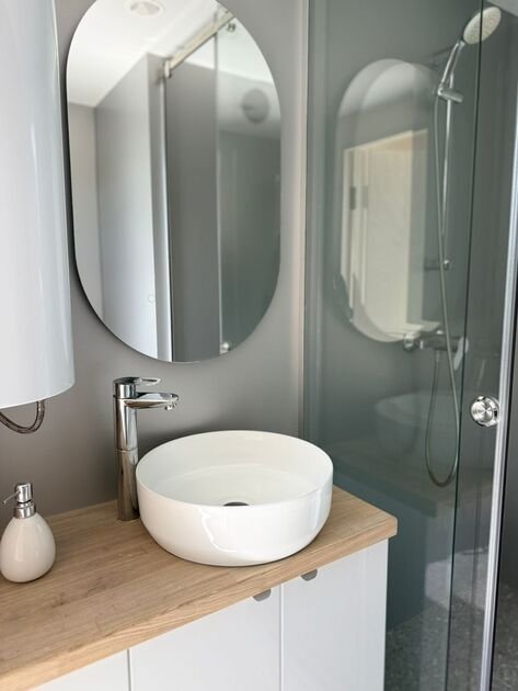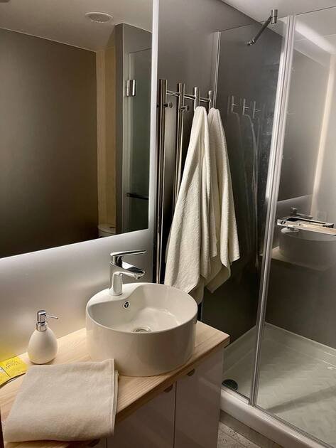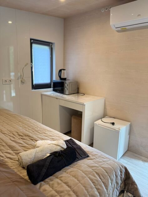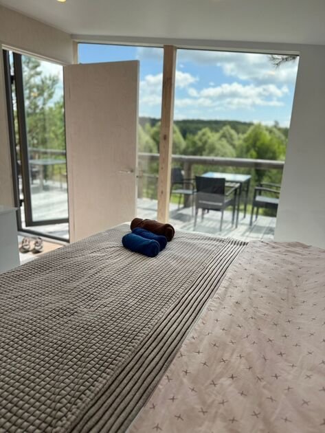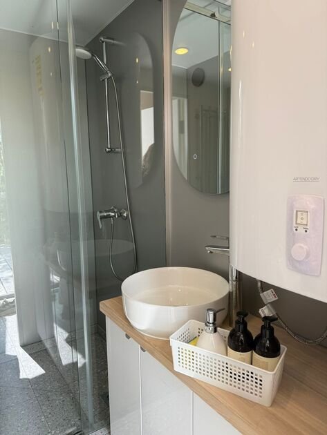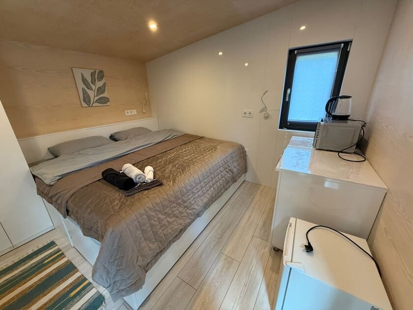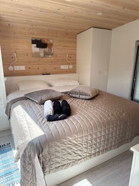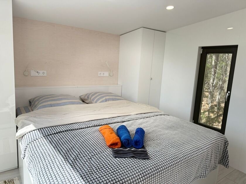 Глэмпинг №3 с двумя отдельными входами и двумя спальнями с удобными кроватями и матрасами ASKONA. Полноценный санузел с душевой кабиной и всей необходимой сантехникой. Тамбур-прихожая оборудована открытым шкафом для хранения верхней одежды и обуви, что добавляет удобства в повседневной жизни.