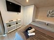 Санузел с душевой кабиной и современной сантехникой. В тамбуре-прихожей есть шкафы для верхней одежды и дополнительные места для хранения.