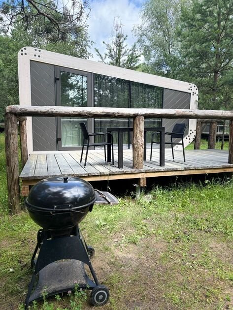 Глэмпинг №1 идеально подходит для комфортного проживания четырех человек. В спальне — удобная двухместная кровать с матрасом ASKONA. Гостиная-студия оснащена раскладным диваном и обеденным столом. Кухня полностью оборудована варочной поверхностью.