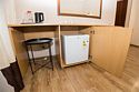 телевизор, санузел, балкон, две полутораспальные кровати, стулья, шкаф для одежды, журнальный столик, чайный набор, душ, мини-холодильникВ гостиничном номере