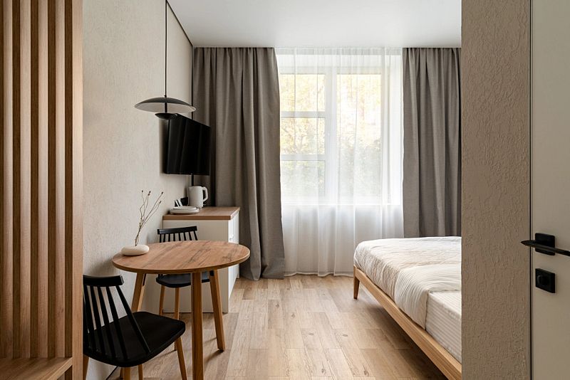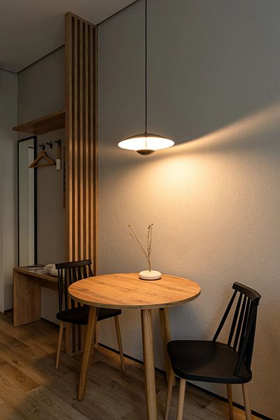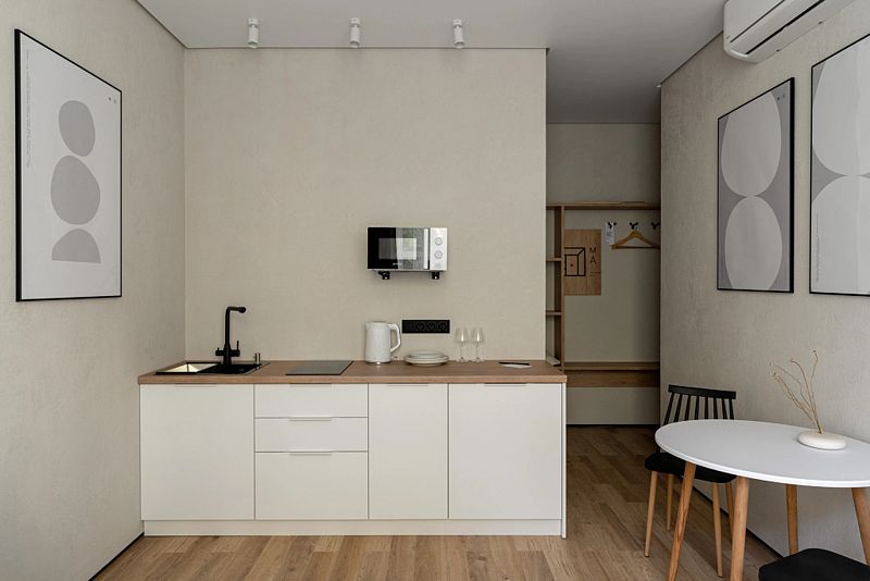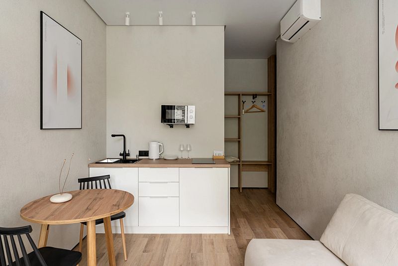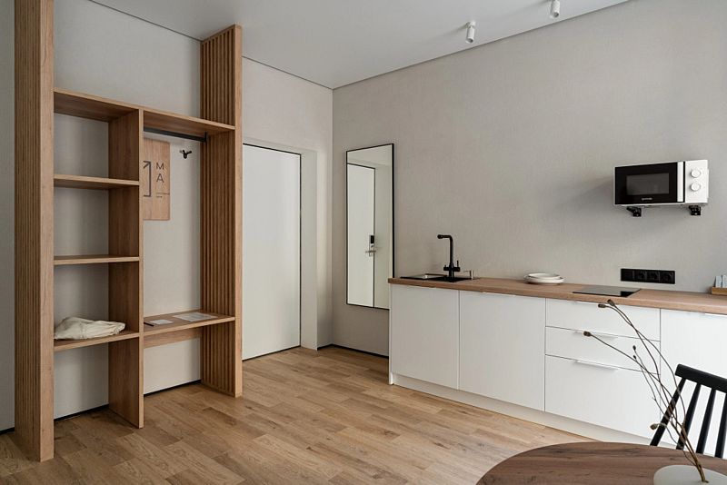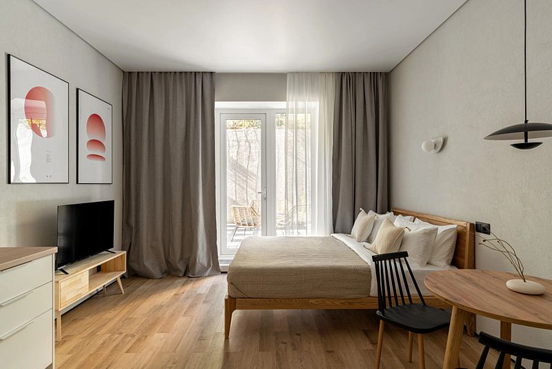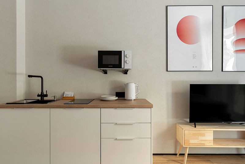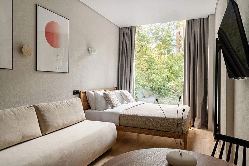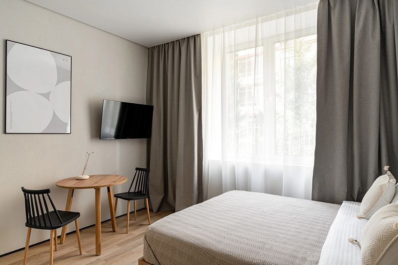 Каждый номер оснащён оборудованной кухней, ванной комнатой, удобной мебелью и зоной для отдыха и сна, в которой также будет удобно работать. Большие окна дают много естественного света.