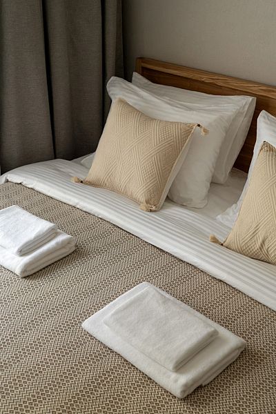 Дизайн дома и номеров выполнен в спокойных тонах и из натуральных материалов, создавая атмосферу умиротворения и гармонии.