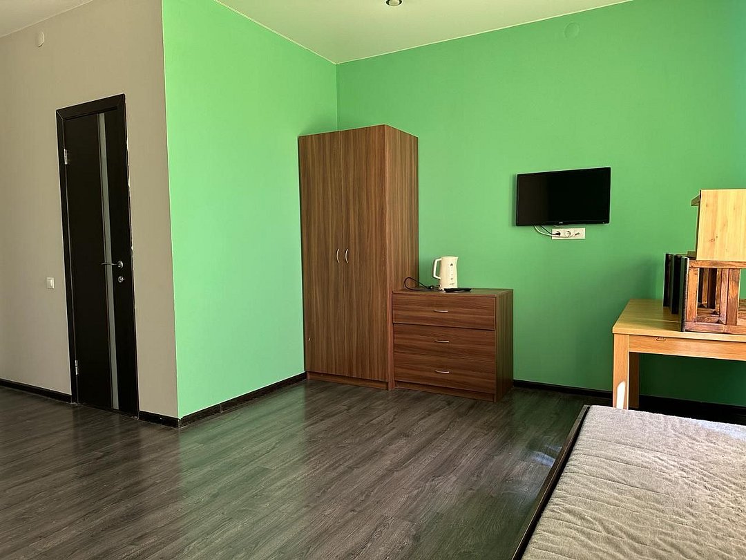 В каждом номере отдельный вход, прихожая, спальня, санузел с душевой, телевизор, чайник, холодильник.
