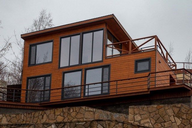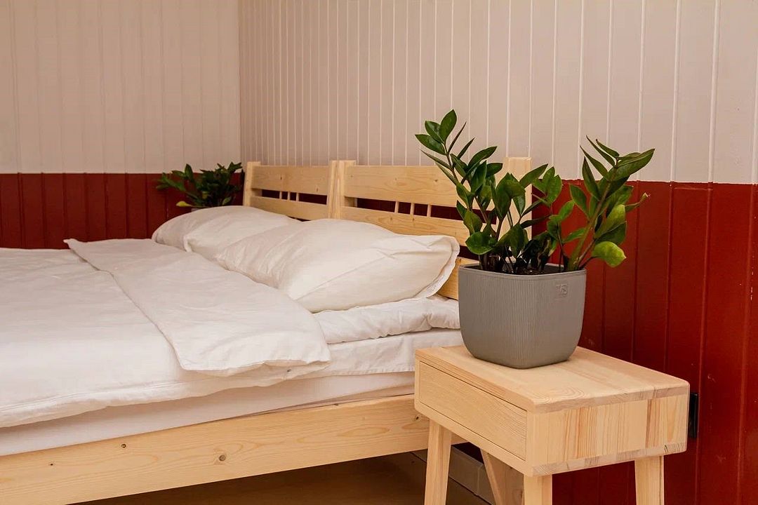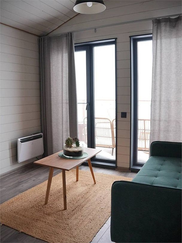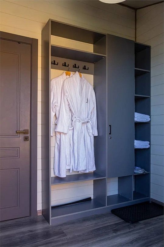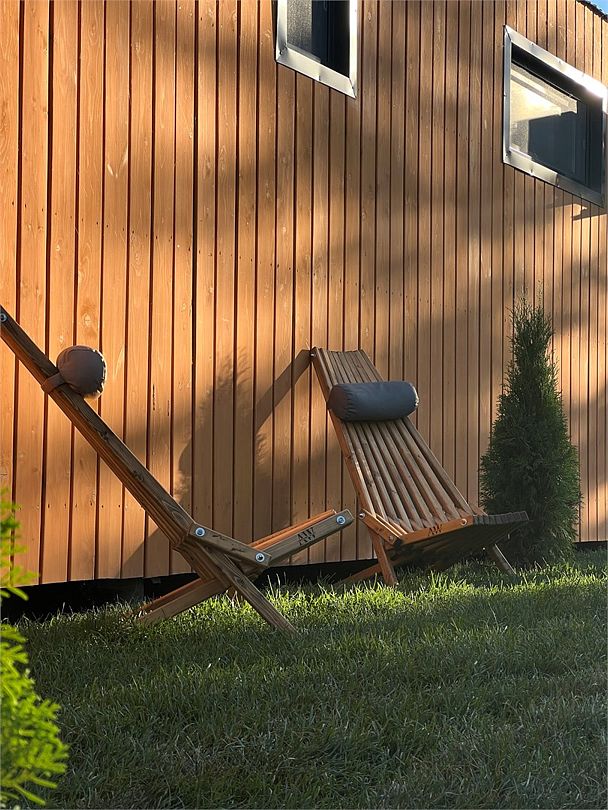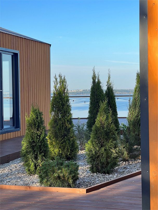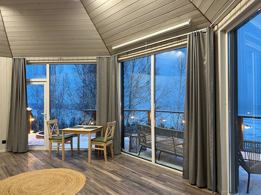 Барн хаус — уютные благоустроенные домики с террасой, рассчитанные на 2–4 человека. Каждый домик оснащен собственной террасой с видом на Камское море и японской бочкой «фурако».