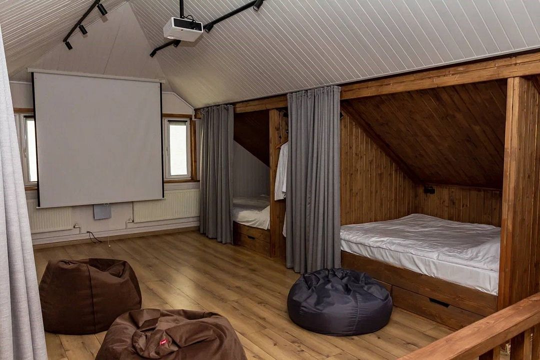 Вилла в эко-отеле «Масловка» — отличный повод сбежать из города большой компанией. Большой просторный дом, оснащённый всем необходимым, рассчитан на восемнадцать человек.