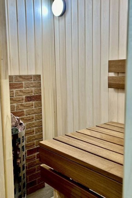 Финская сауна и душевая зона с горячей водой, чтобы вы могли расслабиться после долгой недели, телевизор, кондиционер, WiFi. А если вы любитель шашлыков — есть барбекю зона.