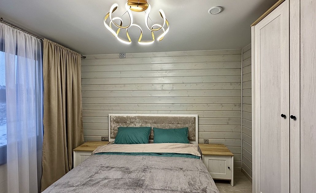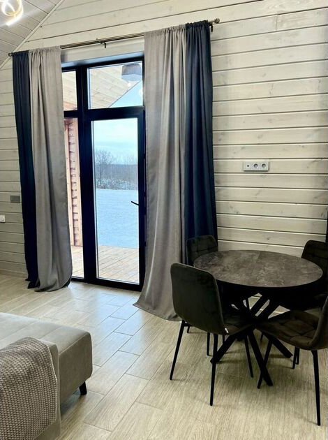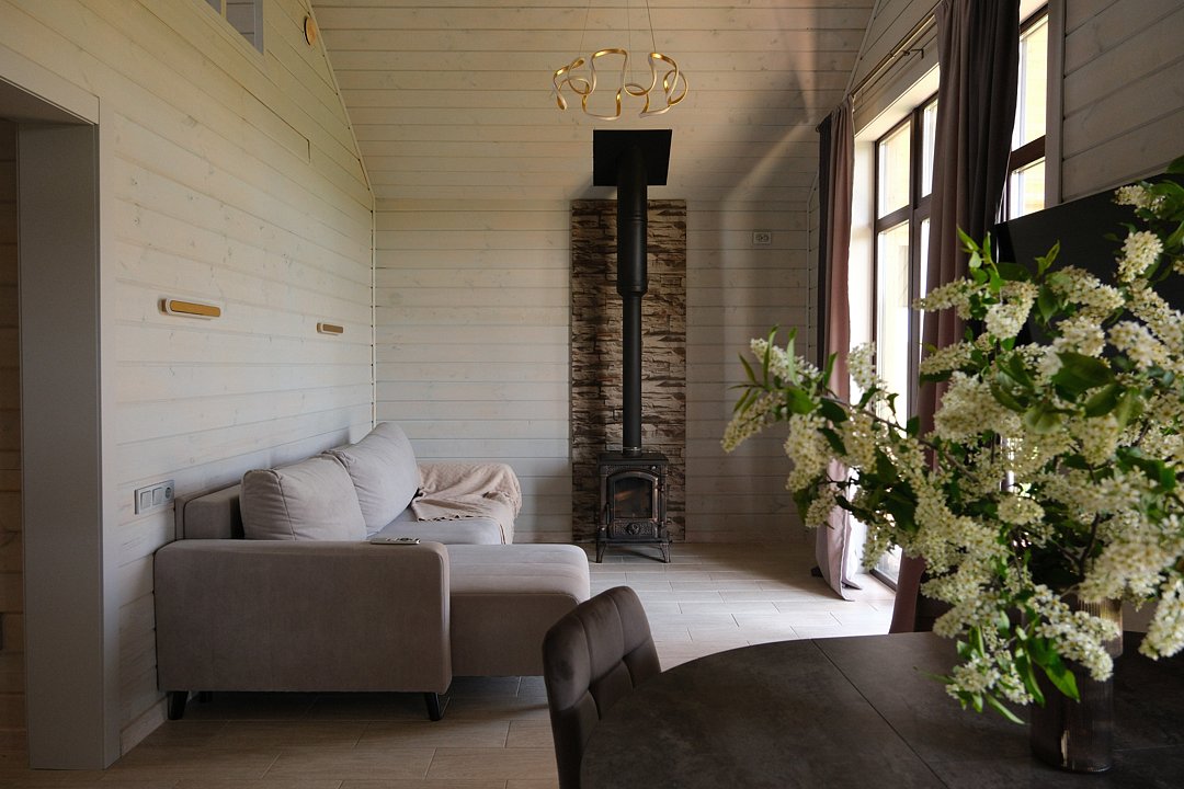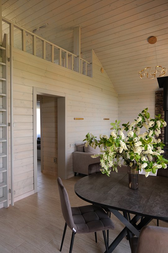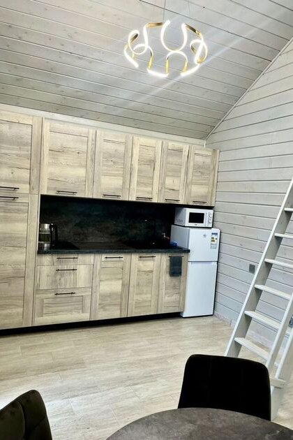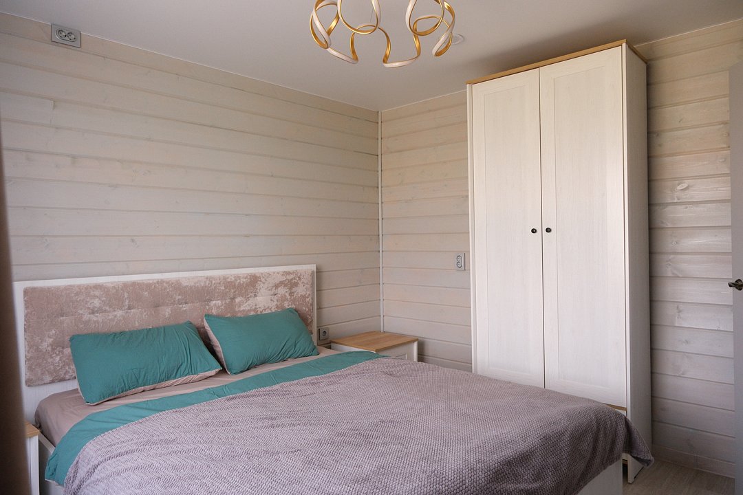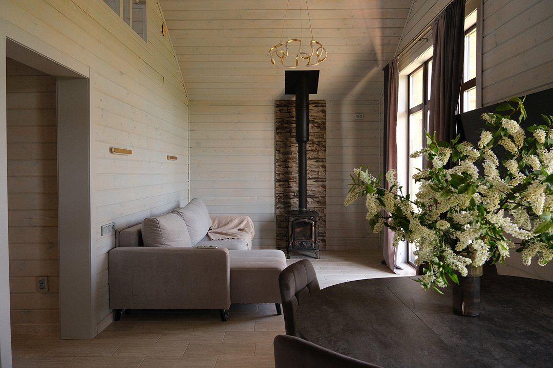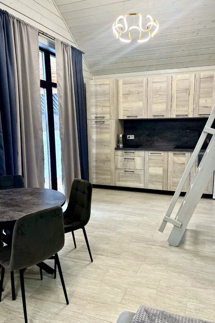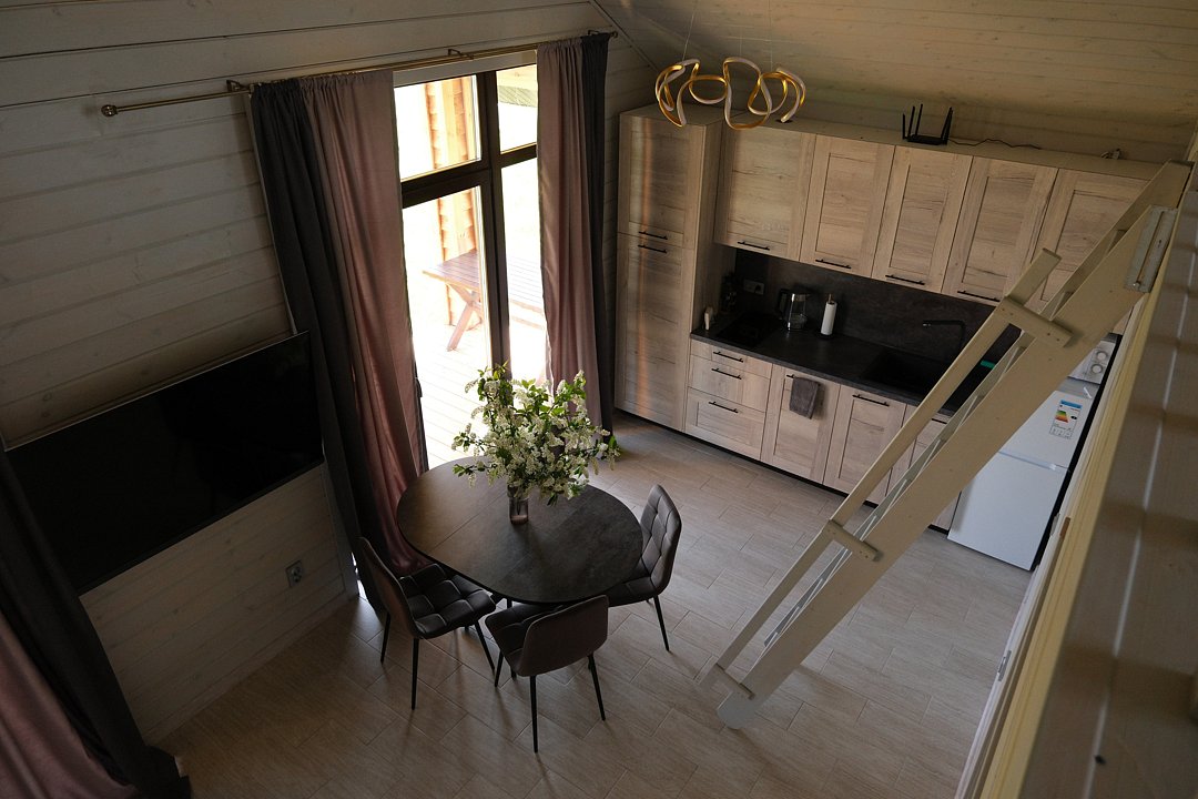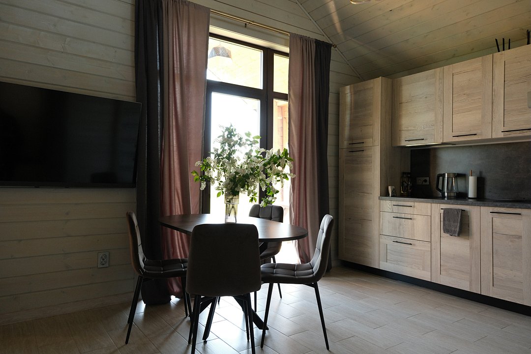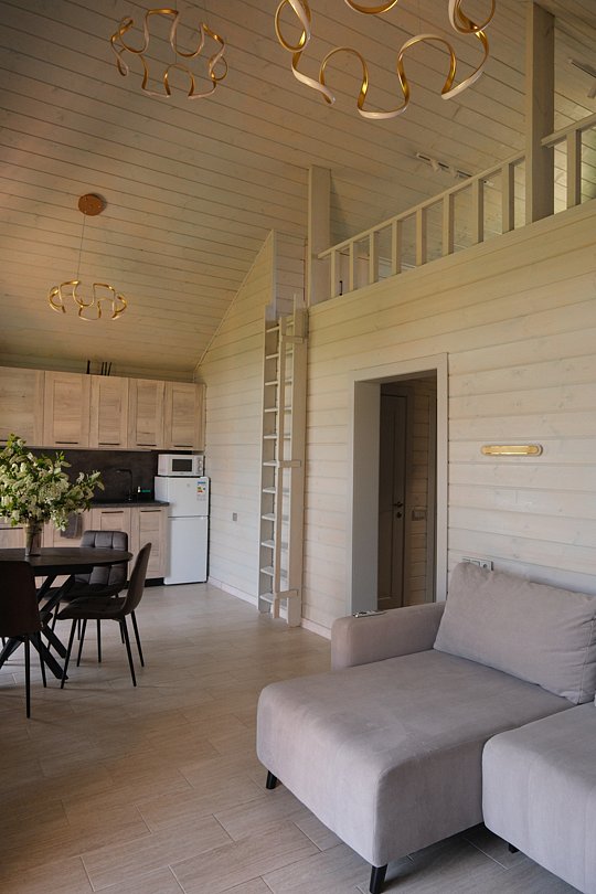 Дом выполнен полностью из экологически чистых материалов в современном стиле. Очень красивый и уютный домик: гостиная зона с панорамными окнами, выходом на террасу, кухня со всей необходимой техникой и посудой, уютная спальня оставит неизгладимые впечатления от проведённого вами отдыха.