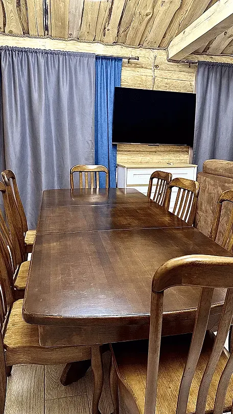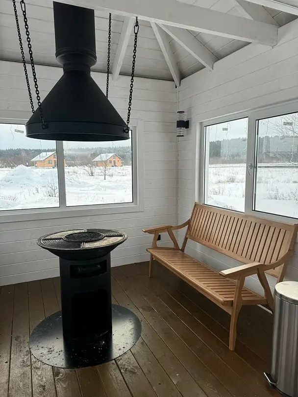 «Минем Ранчо» предлагает своим гостям уникальную закрытую беседку площадью 18 м², вмещающую до семи человек. Выполненная из дерева, беседка оборудована камином и самоваром, создавая идеальную атмосферу для уютных встреч и общения.