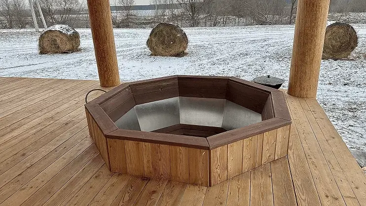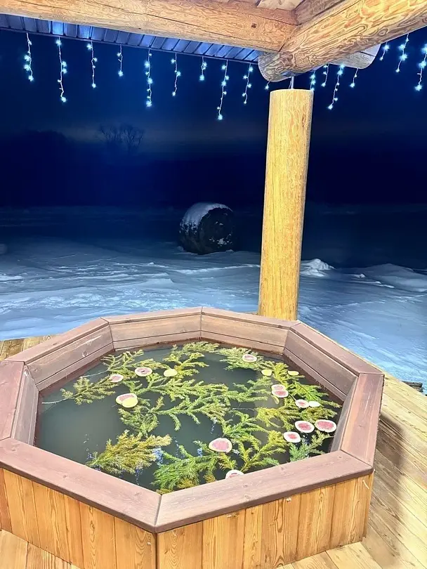 Чан можно наполнить ароматными маслами, свежими хвойными ветками, цитрусовыми, лепестками роз или даже молоком, добавляя нотку роскоши и заботы о себе в этот расслабляющий опыт.