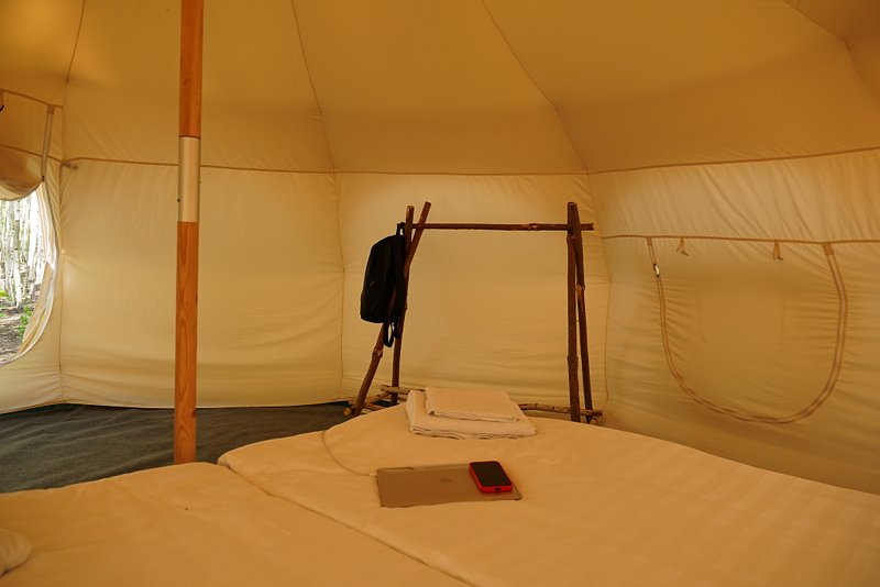 На территории глэмпинга также живут собаки и кошки, если они вас смутят, сообщите об этом.