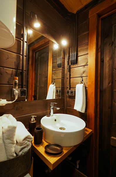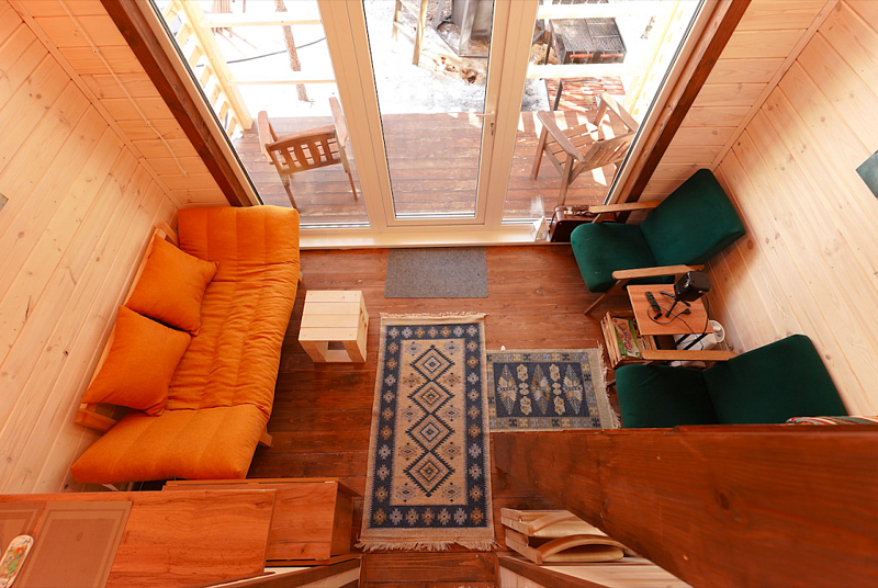 Также на территории вы найдёте общую кухню, сцену, гриль-зону, баню с чаном, террасу с кинотеатром, костровую зону и даже гитару с пианино.