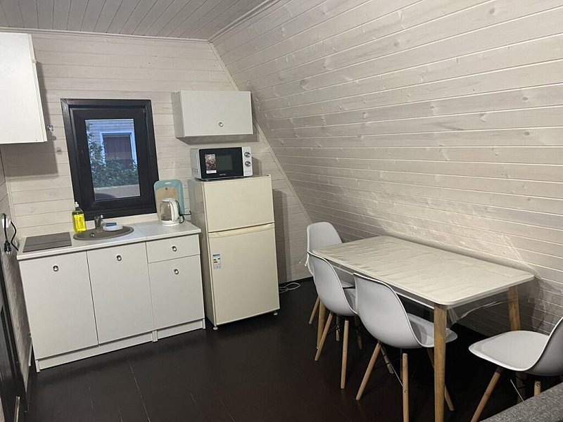 Здесь вас ждёт уютный домик на самом берегу реки. Внутри — всё, что может потребоваться для расслабляющего отдыха и комфортно.