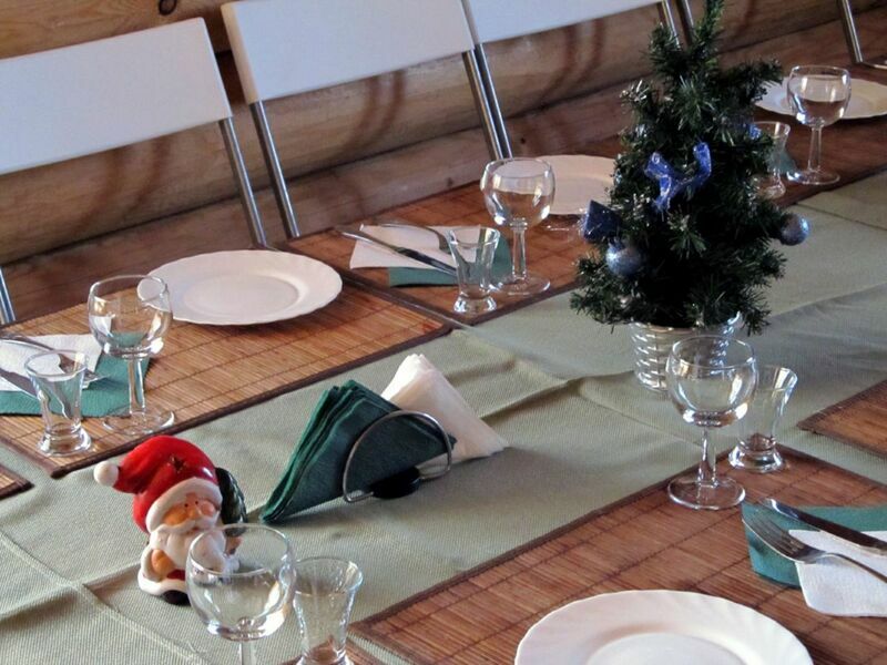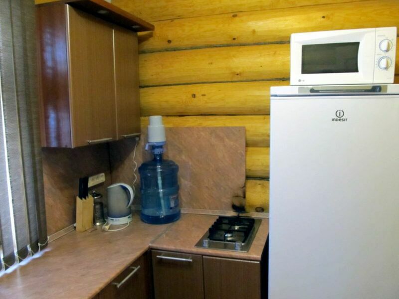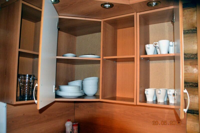 - гостиная-столовая: LCD телевизор, подключенный к спутниковым каналам, музыкальный центр с DVD проигрывателем и функцией караоке, сервированный стол и стулья, кухонный гарнитур, из бытовой техники имеются: газовая плита, микроволновая печь, холодильник, электрочайник, моечная для посуды (горячая и холодная вода), столовая посуда и приборы.