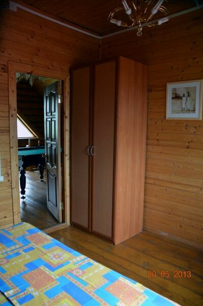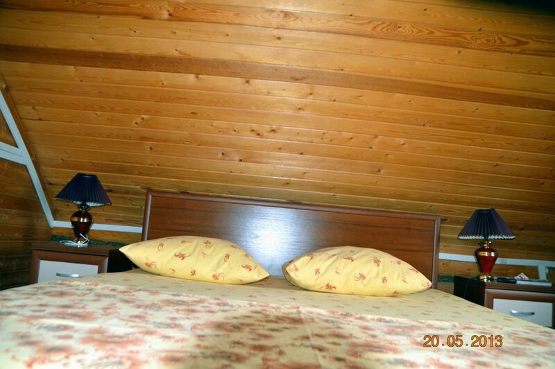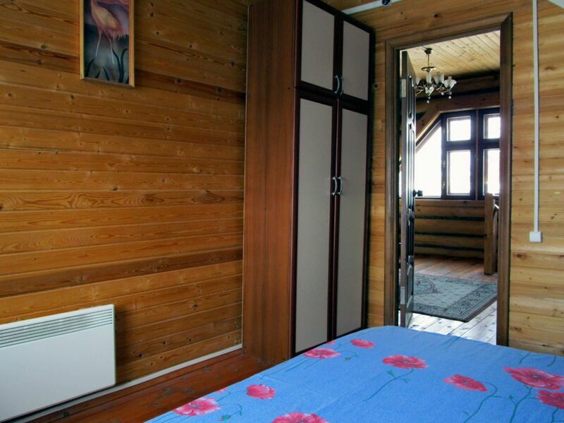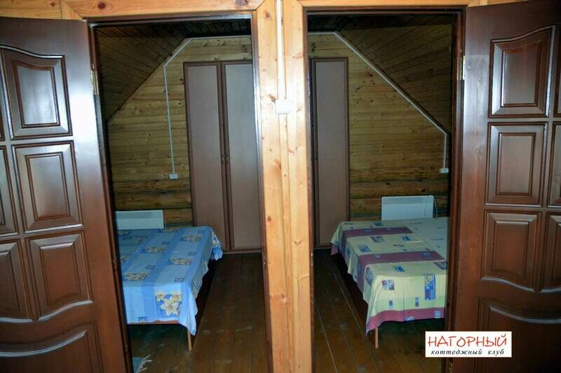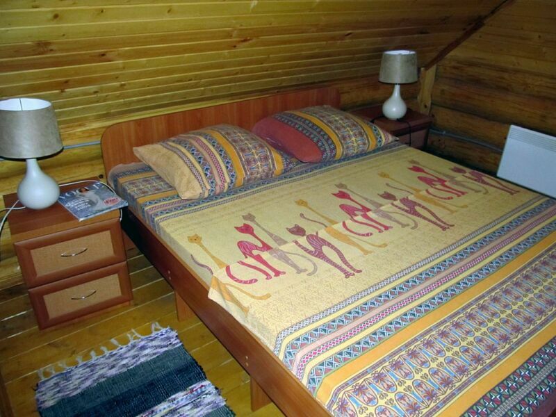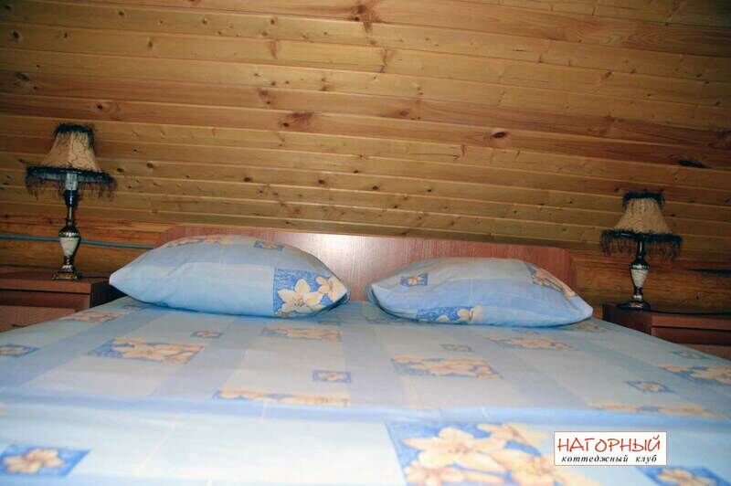 - спальня (две комнаты): просторная двухместная кровать, две прикроватные тумбочки с настольными светильниками, шкаф для одежды, комплекты постельного белья (на все диваны и кровати коттеджа).