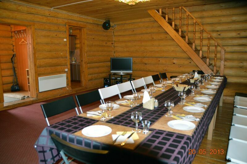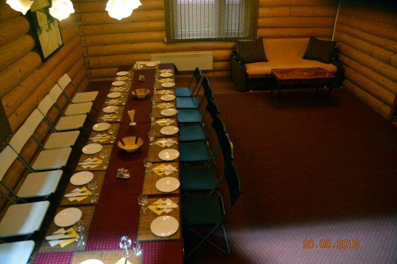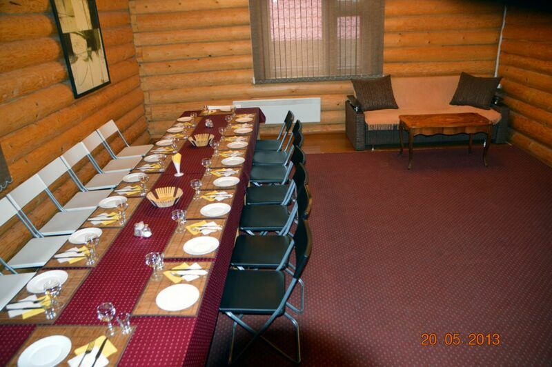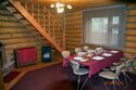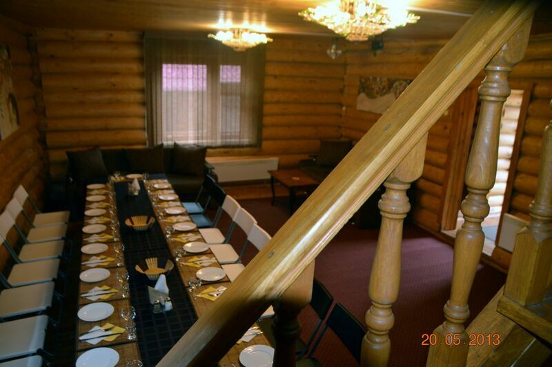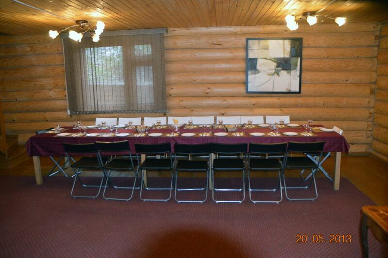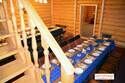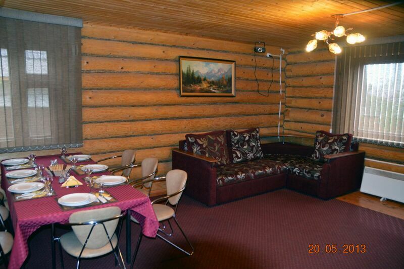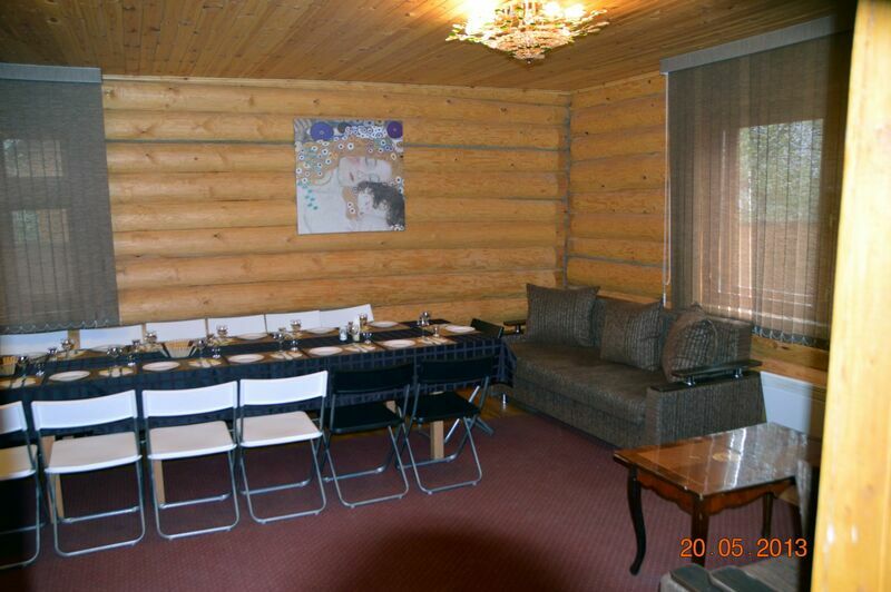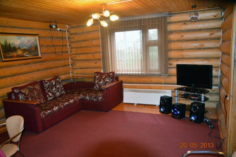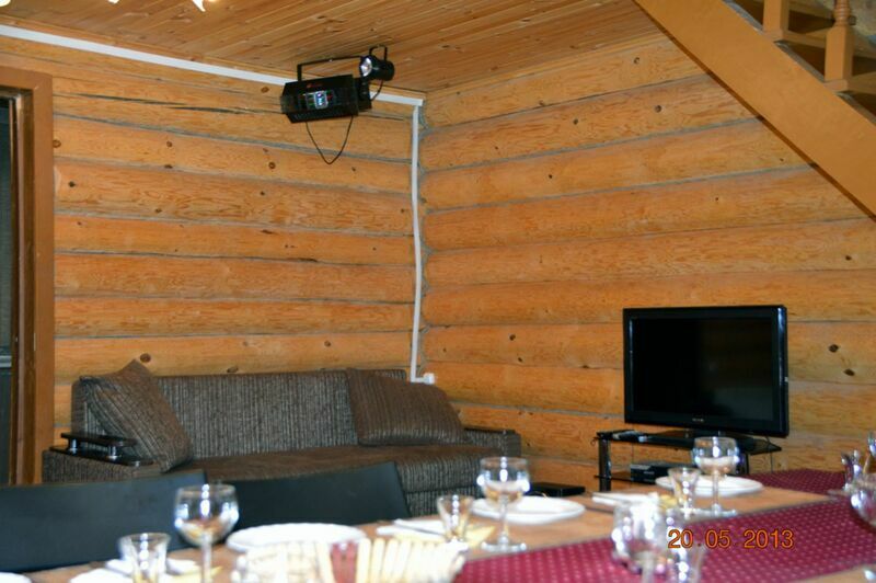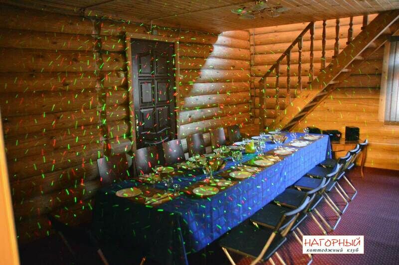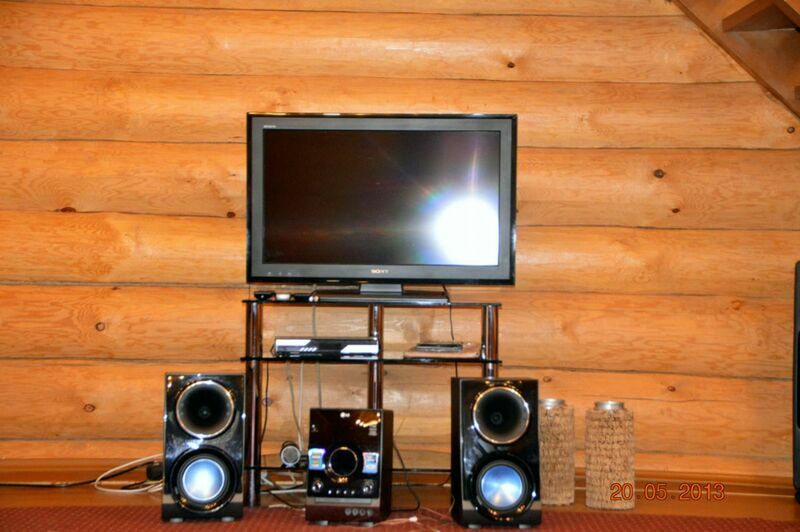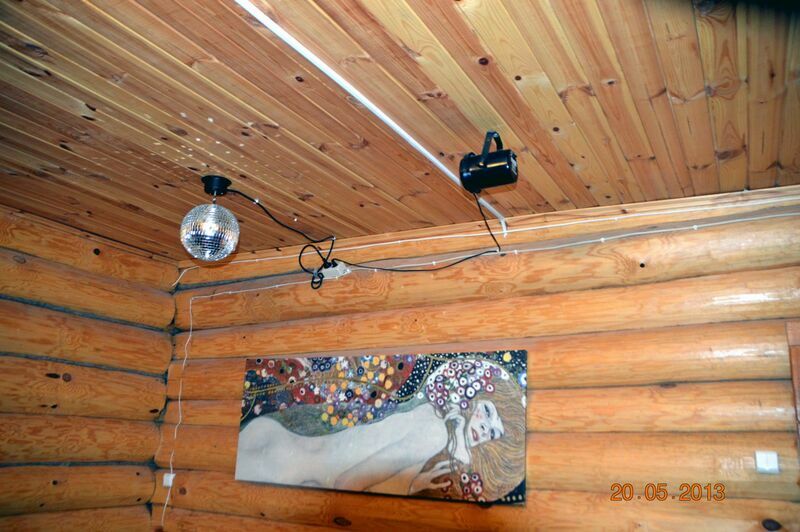 - гостиная: камин, LCD телевизор, музыкальный центр с DVD проигрывателем и функцией караоке, большой угловой мягкий диван, цветомузыкальная установка с зеркальным шаром, сервированный стол и стулья.