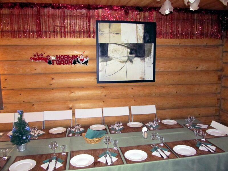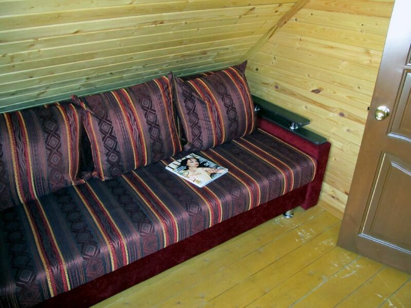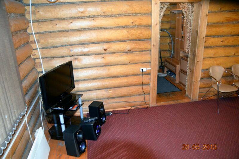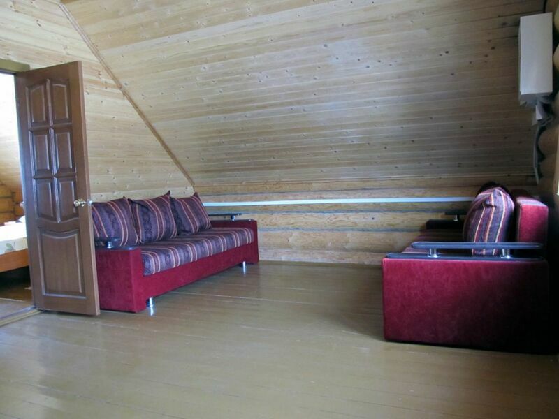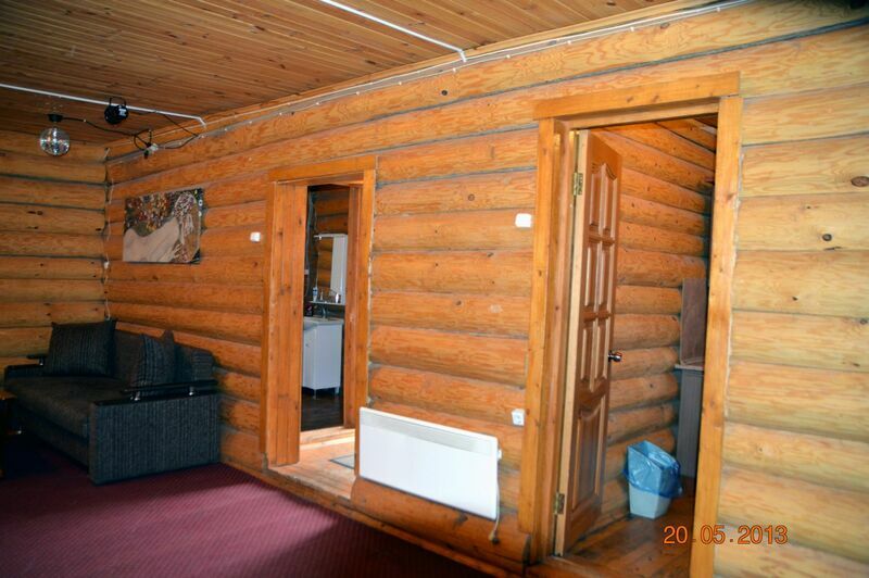 - гостиная: LCD телевизор, подключенный к спутниковым каналам, музыкальный центр с DVD проигрывателем и функцией караоке, два раскладных мягких дивана, цветомузыкальная установка с зеркальным шаром, сервированный стол и стулья.