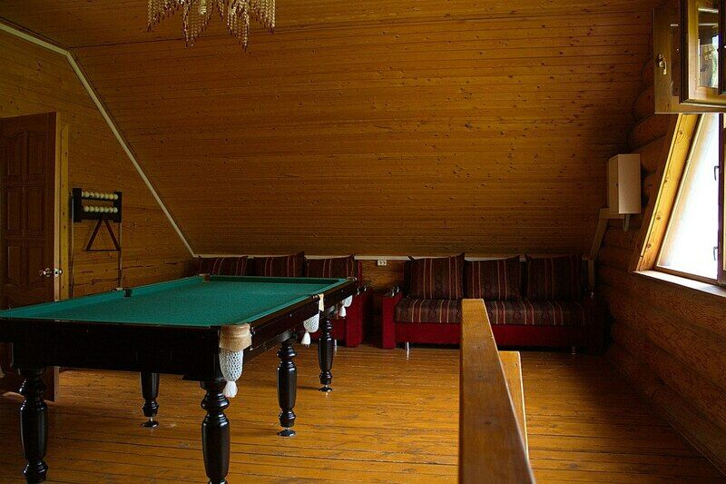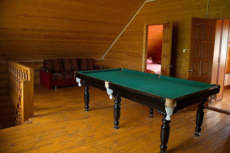 - комната отдыха: три мягких раскладных дивана, бильярд, подставка под кии.