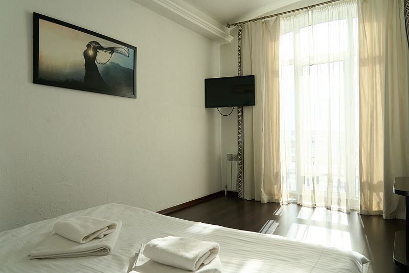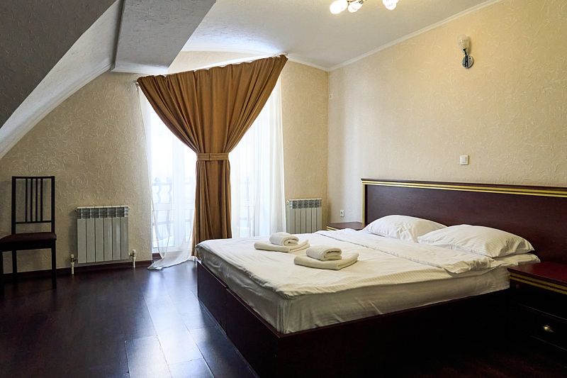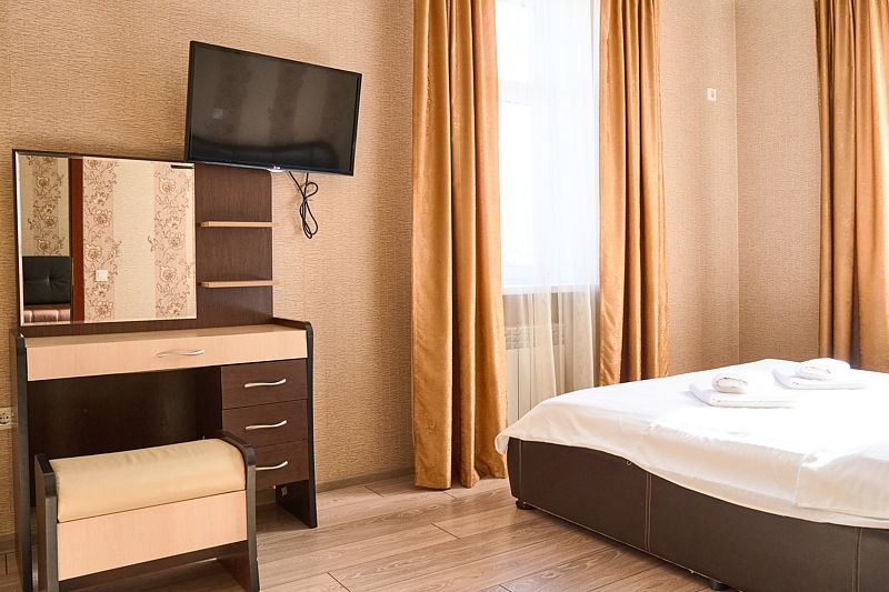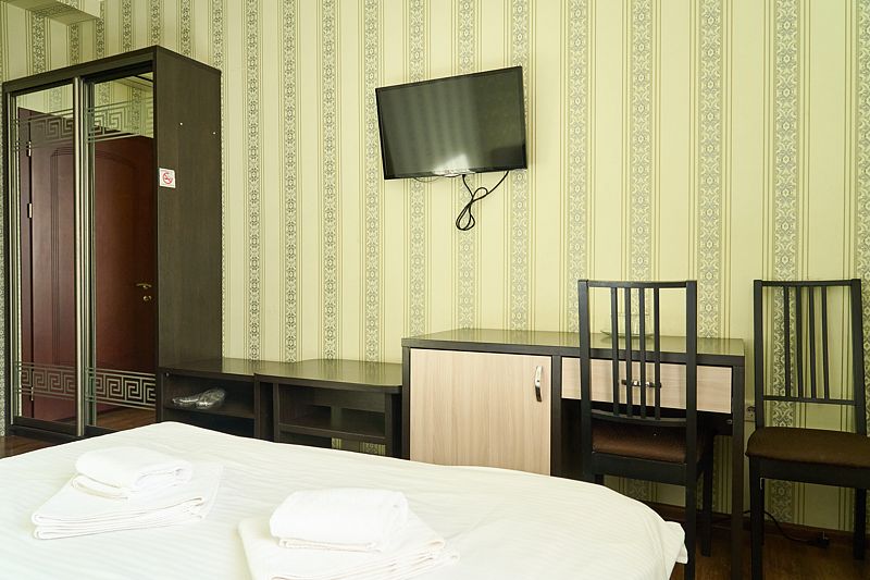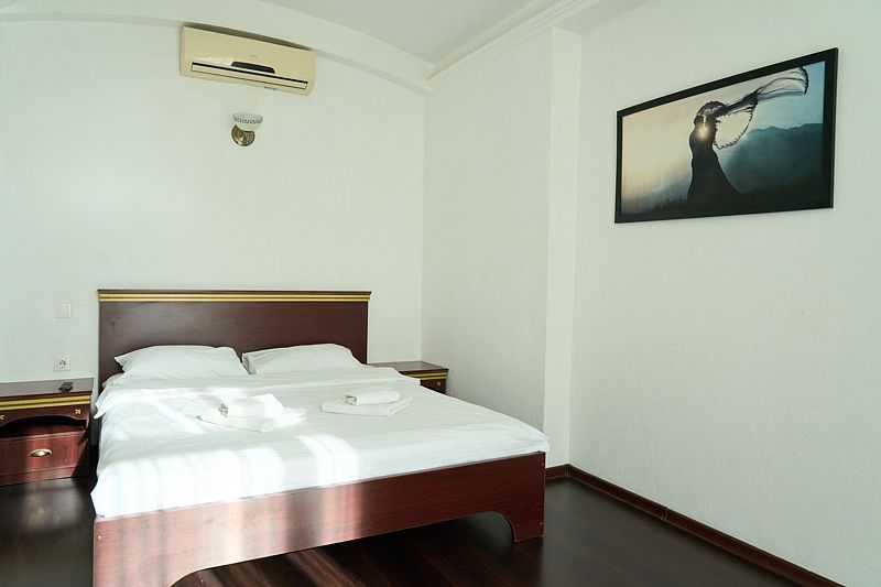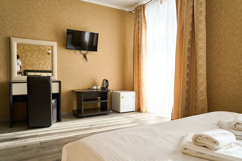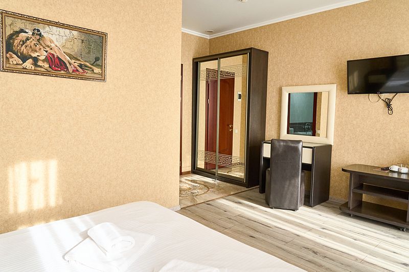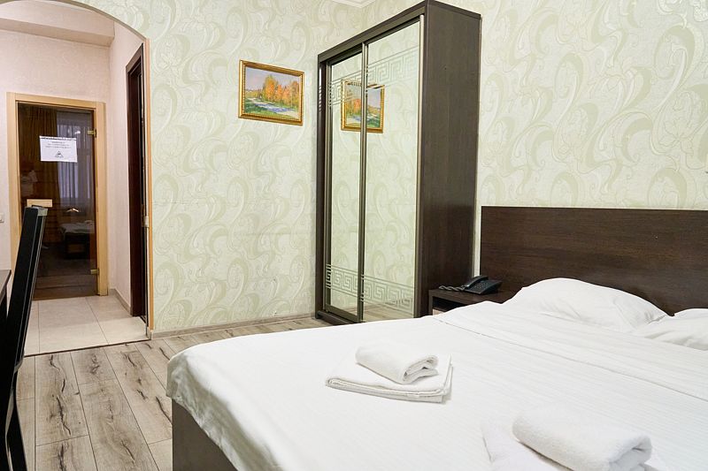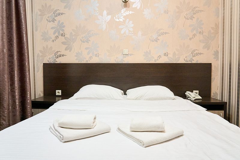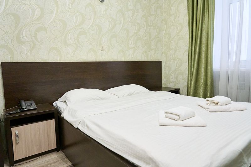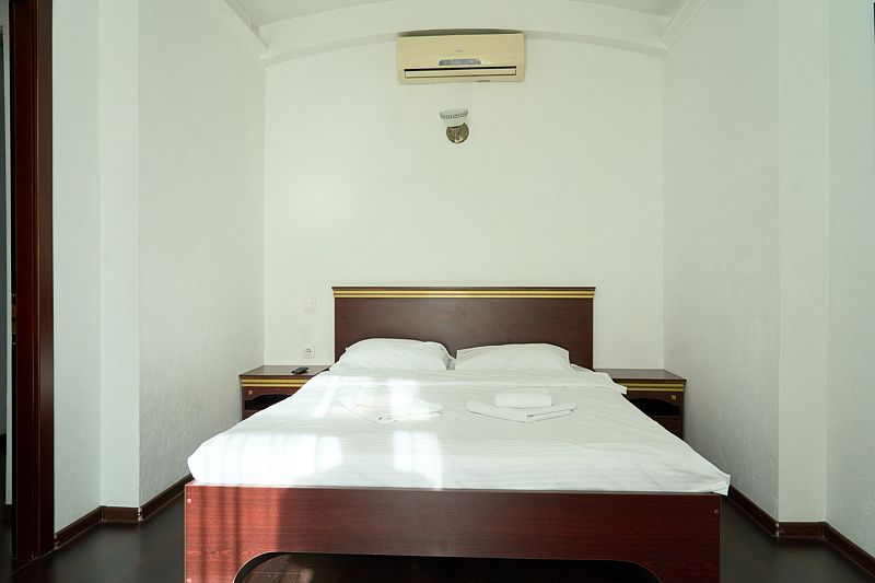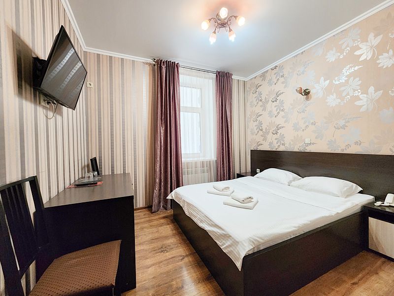 Номер «Стандарт» в отеле предлагает уютное и комфортабельное пространство для двух гостей, обеспечивая всем необходимым для приятного пребывания. В вашем распоряжении будет большая двуспальная кровать с ортопедическим матрасом, обеспечивающая идеальный отдых и восстановление сил. Для вашего удобства в номере установлен фен, телевизор с широким выбором каналов для развлечений, кондиционер для создания идеального микроклимата, телефон и бесплатный Wi-Fi, чтобы вы оставались на связи с близкими и могли планировать свой отдых. В вашем распоряжении также будет холодильник для хранения закусок и напитков, а вместительный шкаф-купе позволит разместить все необходимые вещи.
