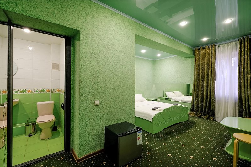 Каждый номер оборудован всем необходимым для удобства: собственная ванная комната, телевизор, холодильник, чайник, посуда, чайный набор, тапочки и туалетные принадлежности. Из окон многих номеров открывается живописный вид на внутренний дворик с деревьями.