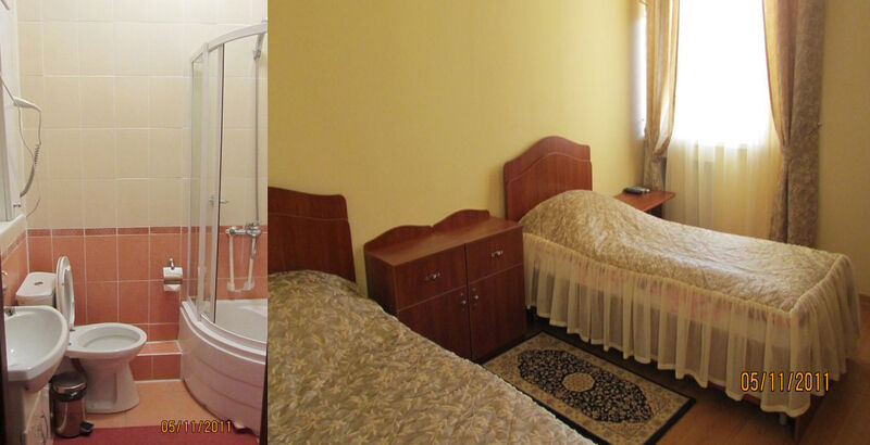 В четырехэтажном здании в центре комплекса располагаются гостиничные номера. Комната с двумя раздельными кроватями (или одной двухместной кроватью), ванная комната.