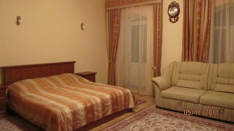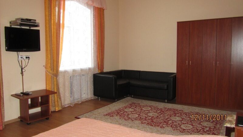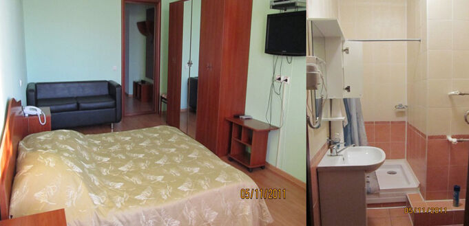 Комната с одной двухспальной кроватью, с диваном, ванная комната с душевой кабиной.