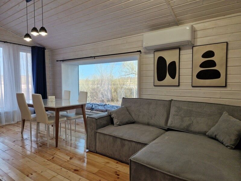 Дом с видом на воду. Гостиная, две спальни с односпальными кроватями, мини-кухня (микроволновка, чайник, плитка, посуда, морозильный ларь), душевая, туалет, телевизор в каждой комнате, кондиционер, wi-fi, холодильник, веранда, мангальная зона.