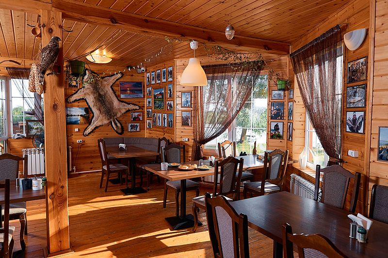 Читать полностьюГлавный общественный центр базы — гостиная, которая за годы работы превратилась в настоящий музей, хранящий историю и атмосферу этого места. Стены украшают фотографии гостей с трофеями, а полки заполнены сувенирами, привезенными из разных уголков страны.
