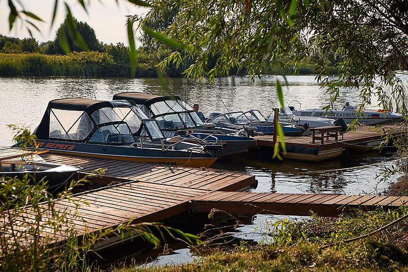 На территории обустроен собственный лодочный причал, где вы можете пришвартовать свой флот. Здесь подведено электричество, что позволяет с легкостью заряжать аккумуляторы электромоторов. А для безопасного спуска и подъема лодок оборудован бетонированный слип.