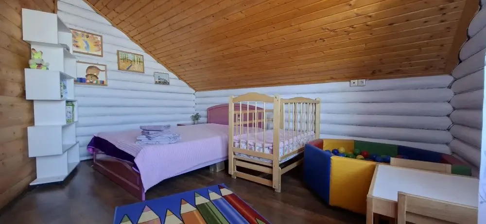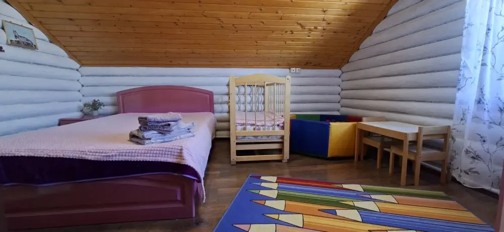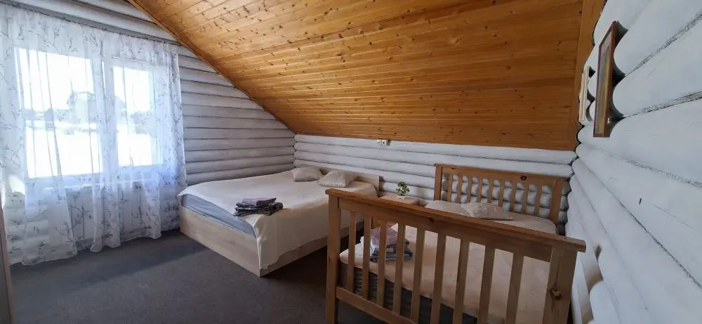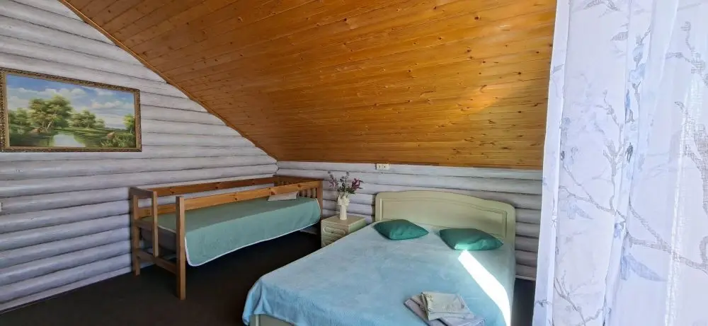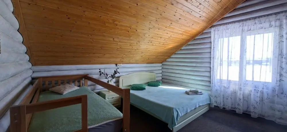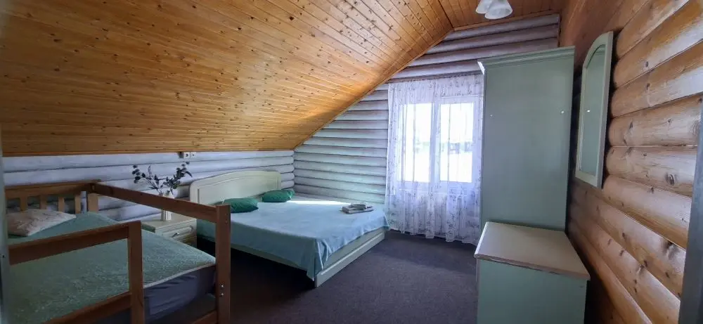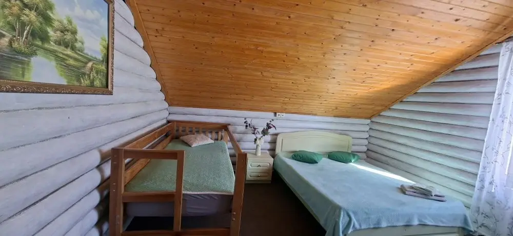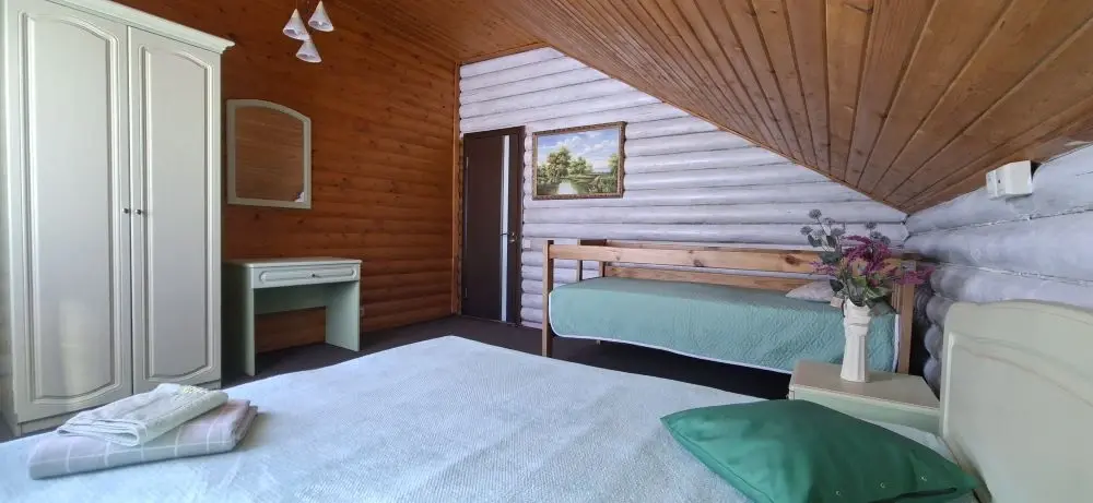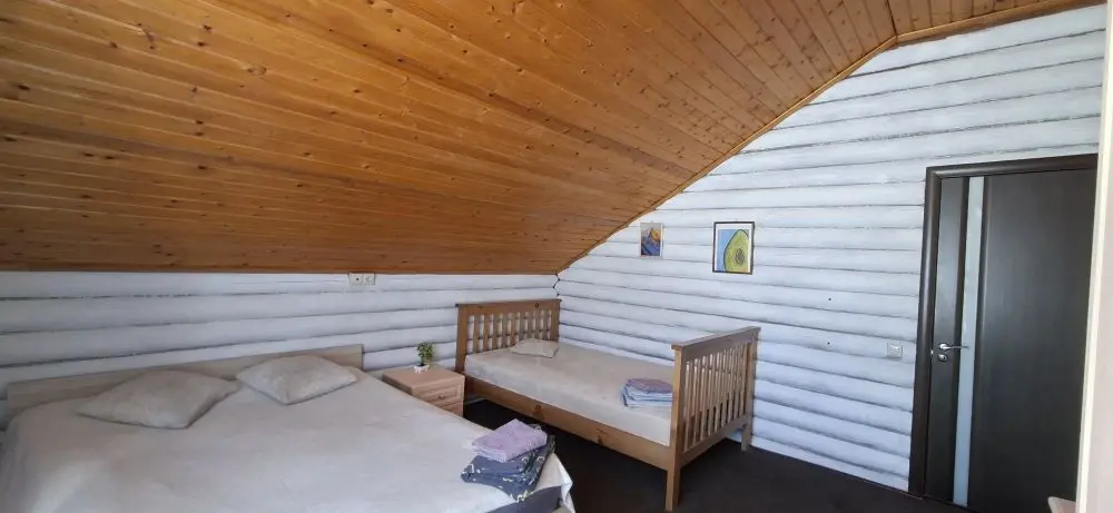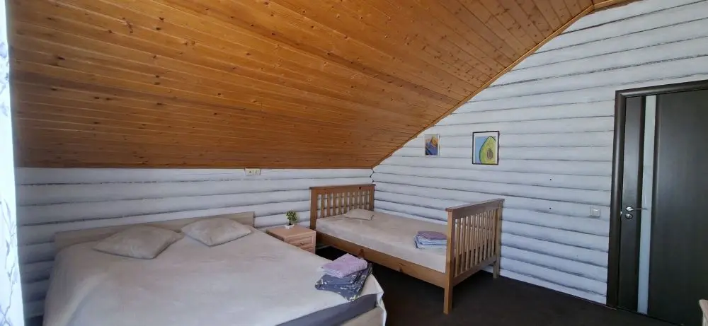 - 2 спальни на втором этаже (3 кровати и раскладной диван).