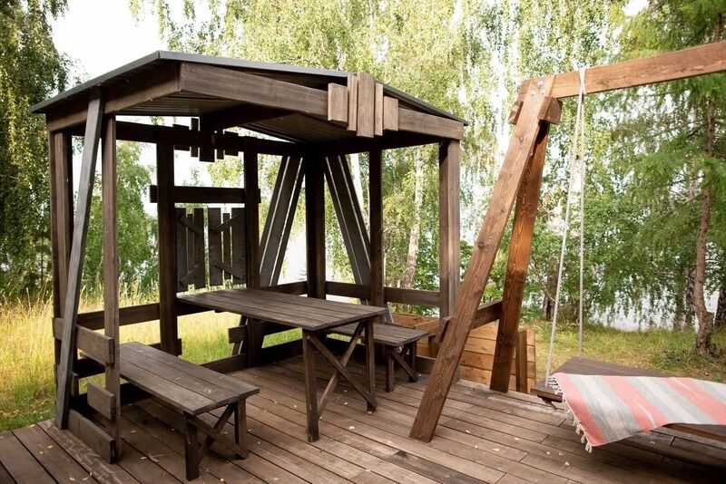 Рядом с домиком своя беседка, мангал и чан оплачивается отдельно - 5000руб.