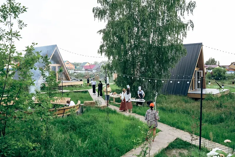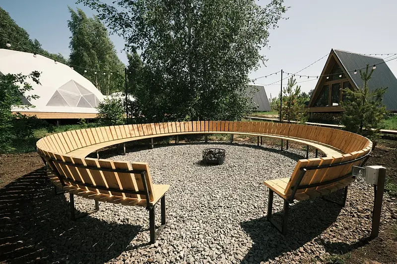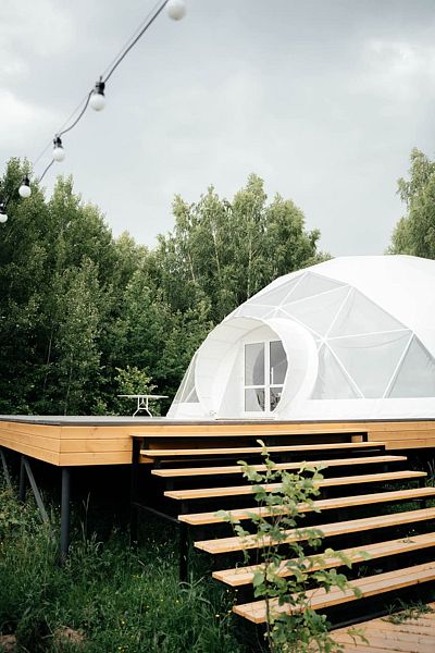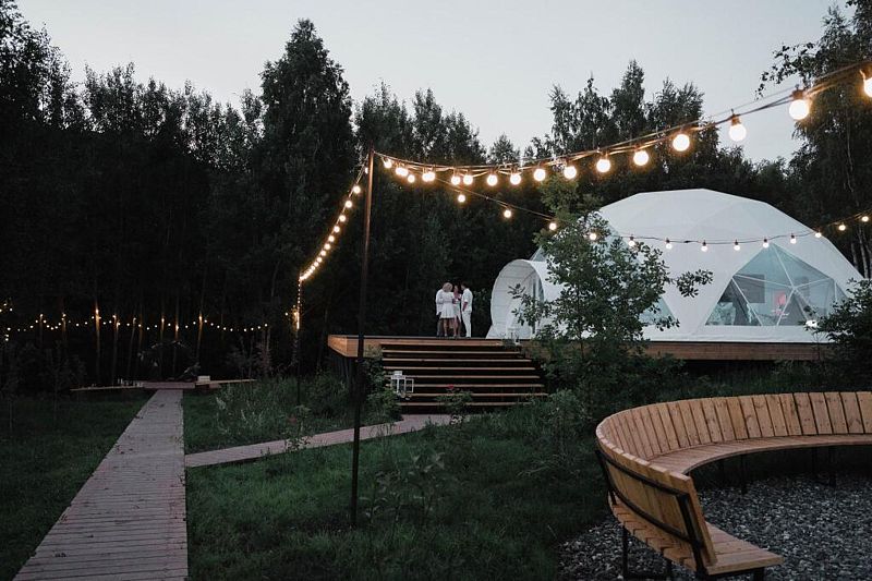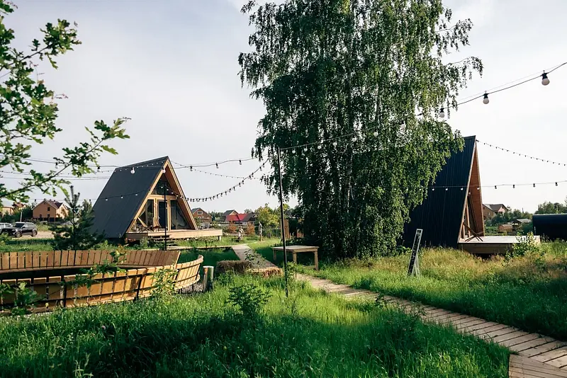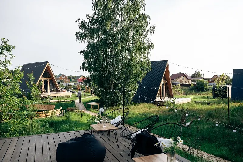 - 10 стильных домиков (геокупола и A-frame) для комфортного размещения до 40 гостей