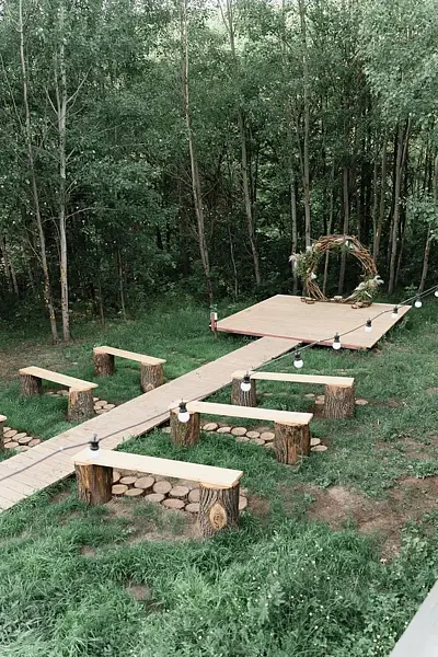 - Площадка для мероприятий вместимостью до 80 человек — идеальна для свадеб, юбилеев, корпоративов, йога- и медитационных ретритов