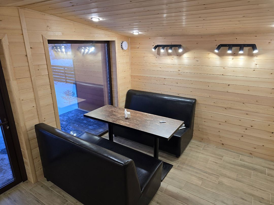 Читать полностьюПросторный предбанник, обставленный мягкими диванами и мини-кухней с теплыми полами, приглашает гостей расслабиться в приятной компании, наслаждаясь музыкой через Bluetooth. Внутри парной царит особая атмосфера — жар от раскаленных камней сочетается с прохладным свежим воздухом, проникающим через специальное отверстие.