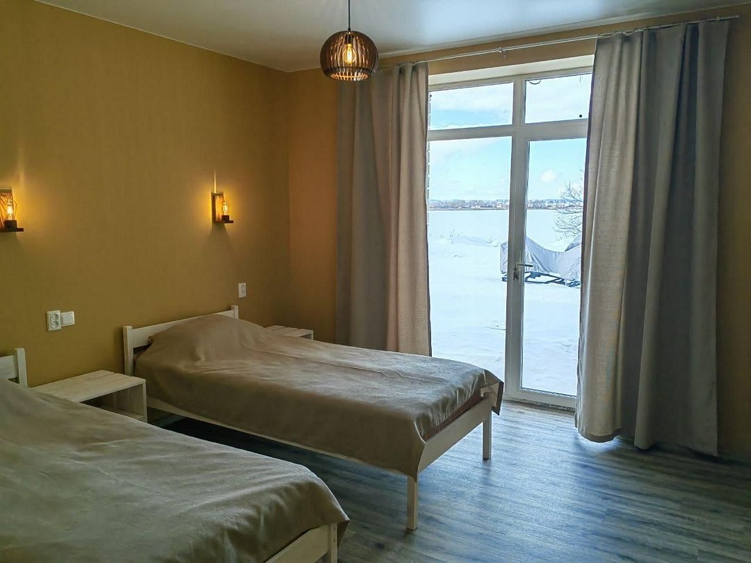 Семейный отдыхДостоинстваУютный номер с удобным краватями. В распоряжении отдыхающих лежаки, полотенца пляжные, спас. жилеты, катамараны, лодки, мангалы. Есть детская площадка, тренажёры. Можно заказать прогулку на скоростном катере. Свой пляж, понтон. Ребёнок напрягался, накупался. Тихое место, никого посторонних. Нам очень понравилось!