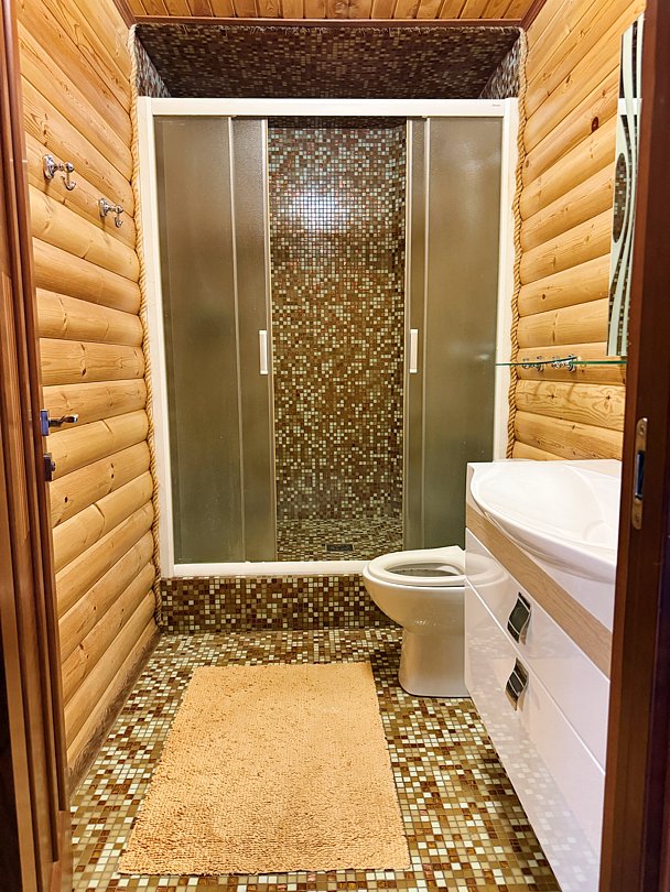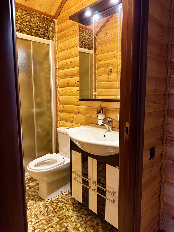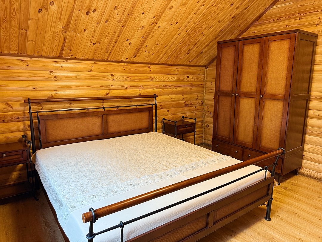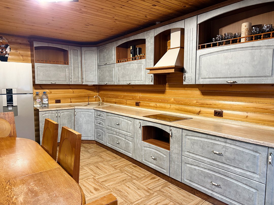 В уютном доме созданы все условия для комфортного проживания. Гостей ждет полностью оборудованная кухня с холодильником, варочной панелью, микроволновой печью, чайником и полным набором посуды для приготовления и сервировки. Для вашего удобства предусмотрены три ванные комнаты с душем, комплектами полотенец и туалетно-косметическими принадлежностями. В общей зоне установлен большой телевизор для совместного просмотра.
