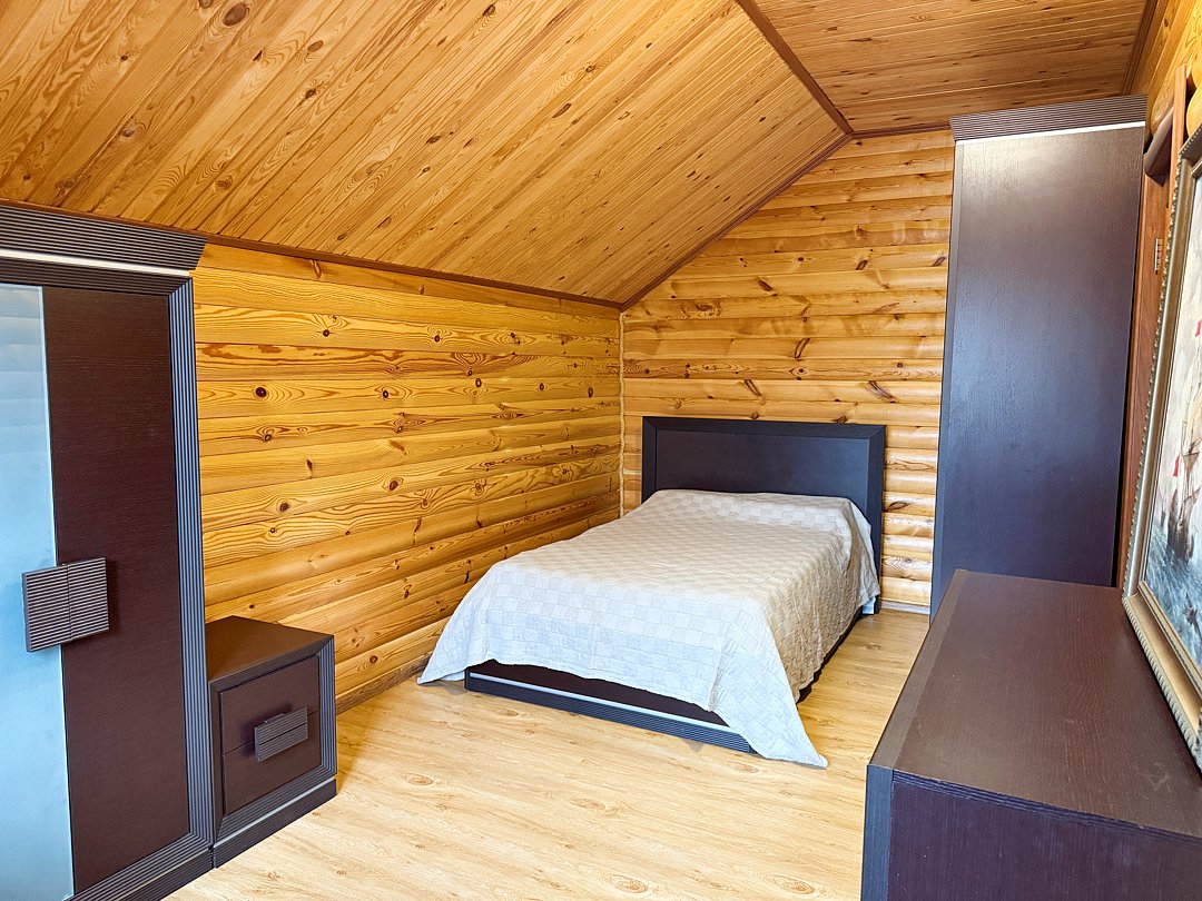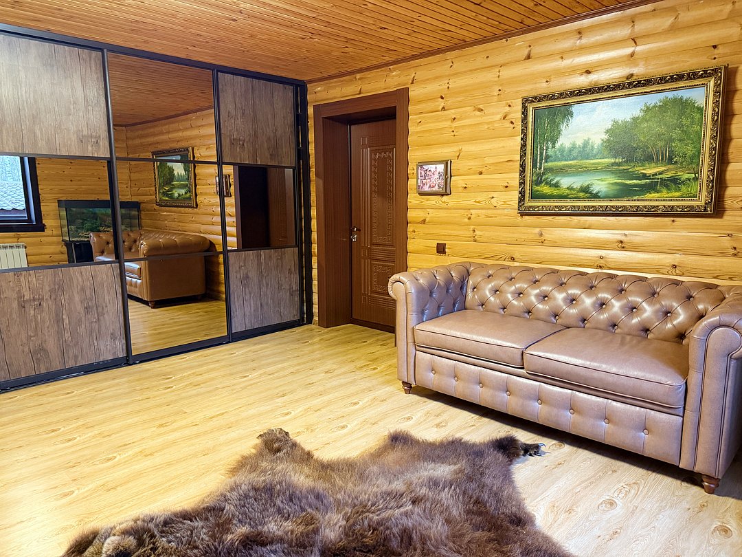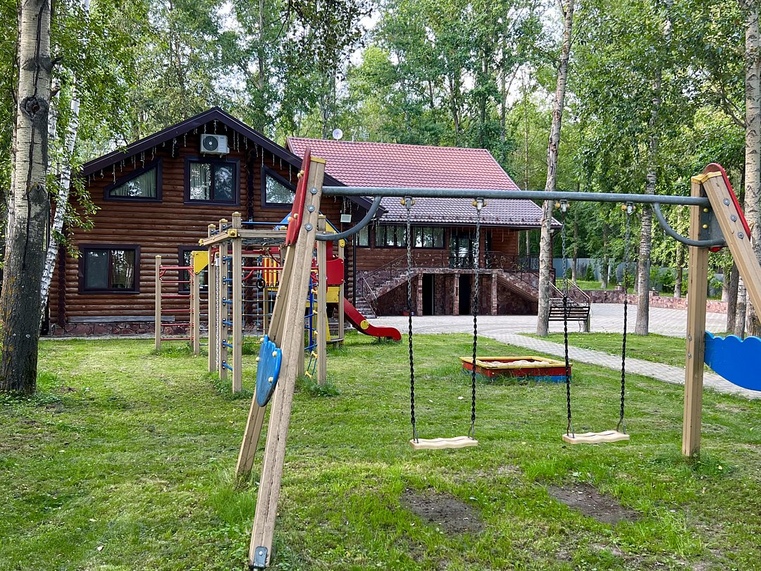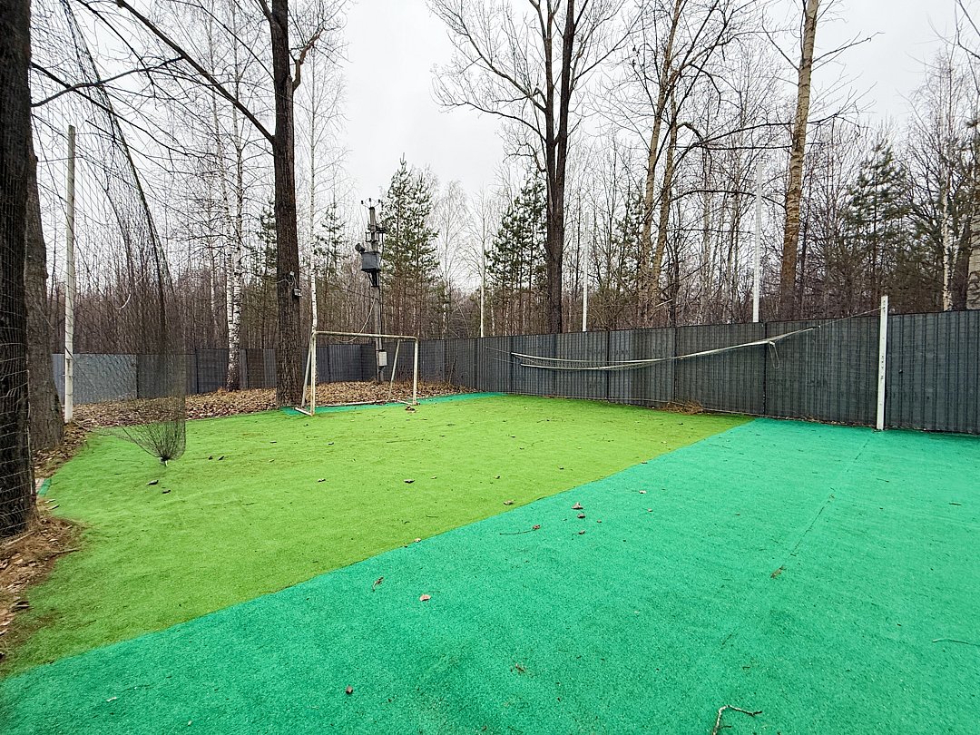 На благоустроенной огороженной территории вас ждет баня с комфортной парной и бассейном (услуга оплачивается дополнительно). Для отдыха на свежем воздухе подготовлена просторная беседка с зоной барбекю и обеденным столом на десять персон. Юных гостей порадует детская площадка, а для активных игр и мероприятий предусмотрено большое футбольное поле.