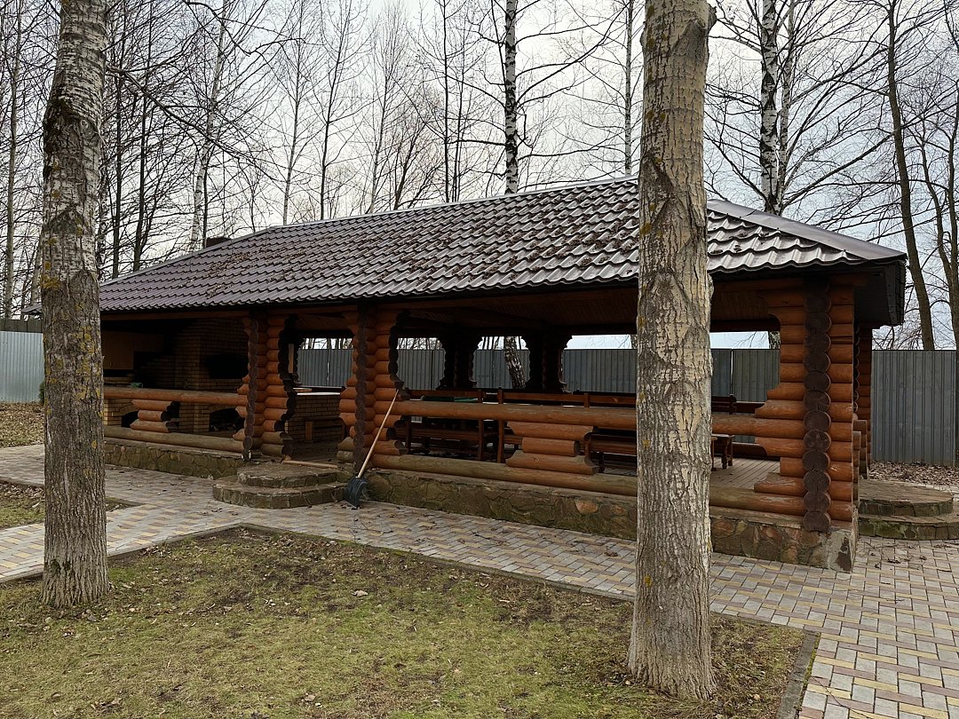 Большая и уютная беседка с зоной барбекю и обеденным столом на десять человек.