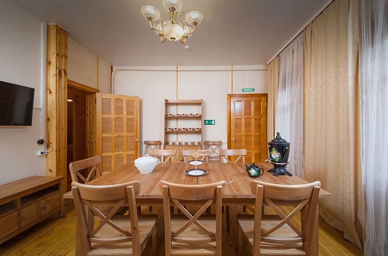 По заказному меню питаются гости, выбравшие размещение в корпусе «Камаз» и «Охотничий домик», однако за отдельную плату можно перейти и на питание по системе «Шведский стол».