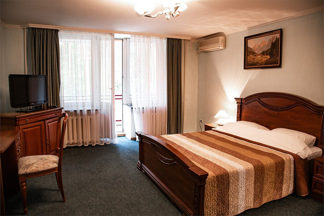 На огражденной территории дома отдыха расположены: шесть благоустроенных спальных корпусов с 2-3-4 местными номерами, общая пропускная способность - 260 человек в смену, клуб с кинозалом на 260 посадочных мест, оснащенный современной аппаратурой для демонстрации кинофильмов, спортивный комплекс площадью 4305 кв.м. с бильярдным, теннисным, тренажерным, дискотечным и детским игровым залами, плавательный бассейн 54х18м (4 дорожки по 25м), освещенная лыжная трасса и ледовый каток с прокатом зимнего спортивного инвентаря (лыжи, снегокаты, санки, ледянки, коньки), детские игровые городки и зимние горки, столовая на 260 мест.